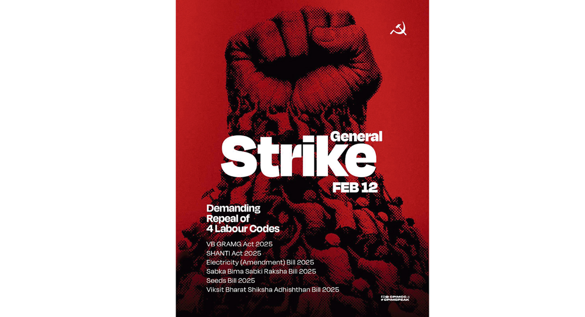 కేంద్ర ప్రభుత్వం తీసుకొచ్చిన నాలుగు లేబర్ కోడ్లను రద్దు చేయాలనీ, విద్యుత్ సవరణ, విత్తన, వీబీజీఆర్ఏఎమ్జీ చట్టాలను వెనక్కి తీసుకోవాలనీ, పాత పెన్షన్ పథకాని పునరుద్ధరించాలనీ, కార్మికులకు కనీస వేతనాలివ్వాలని గురువారం తలపెట్టిన దేశవ్యాప్త సార్వత్రిక సమ్మెను కార్మికులు, రైతులు, వ్యవసాయ కూలీలు జయప్రదం చేయాలని సంయుక్త కిసాన్ మోర్చా(ఎస్కేఎం) పిలుపునిచ్చింది. సార్వత్రిక సమ్మెలో భాగంగా రాష్ట్ర వ్యాప్తంగా జిల్లా కేంద్రాల్లో సామూహిక ర్యాలీలు, హైదరాబాద్లోని బాగ్లింగంపల్లిలో గల ఆర్టీసీ కళ్యాణ మండలం నుంచి ఇందిరా పార్కు వరకు భారీ ప్రదర్శన చేపట్టనున్నట్టు ప్రకటించింది. ఈ మేరకు ఎస్కేఎం కన్వీనర్లు టి.సాగర్, పశ్య పద్మ, వి ప్రభాకర్, మండల వెంకన్న, పెద్దారపు రమేష్, జక్కుల వెంకటయ్య, ఆర్.వెంకట్ రాములు, కాంతయ్య, నాగిరెడ్డి, విజరు, కొండల్ ప్రకటన విడుదల చేశారు. రైతులు, కార్మికులు, సామాన్య ప్రజలపై కేంద్రంలోని బీజేపీ ప్రభుత్వం చేస్తున్న దాడులను ప్రతిఘటించాలని ప్రజలకు పిలుపునిచ్చారు. విద్యుత్ సవరణ చట్టంతో విద్యుత్ చార్జీలు పెరుగుతాయనీ, వ్యవసాయ మోటార్లకు స్మార్ట్మీటర్లు బిగించడంతో సాగు భారమైపోతుందనీ, ప్రజలకు అందుతున్న సబ్సిడీలు ఎగిరిపోతాయని పేర్కొన్నారు. విత్తన చట్టాన్ని మార్చి ఎమ్ఎన్సీ విత్తనాల దిగుమతికి అనుమతులు ఇవ్వడంతో మన రైతులు తీవ్రంగా నష్టపోయే ప్రమాదం ఉందని హెచ్చరించారు. కార్మికులకు కనీస వేతనం, రైతులకు కనీస మద్దతు ధర, నిరుద్యోగ యువతకు ఉపాధి హక్కు అనే ప్రాథమిక హక్కును తిరస్కరించడం వంటివన్నీ ఆర్థిక వలస రాజ్యాల బ్లూప్రింట్ అని పేర్కొన్నారు. దేశ సార్వభౌమత్వాన్ని, స్వావలంబనను అమెరికాకు తాకట్టు పెట్టడం దుర్మార్గమని తెలిపారు. పంటలకు బోనస్ నిలిపేయాలని రాష్ట్రాలపై ఒత్తిడి తేవడం దారుణమని పేర్కొన్నారు. మోడీ ప్రభుత్వం అనుసరిస్తున్న ప్రజా వ్యతిరేక, కార్పొరేట్ అనుకూల విధానాలను ఖండిస్తూ ప్రధాన మంత్రి నరేంద్ర మోడీ, అమెరికా అధ్యక్షులు డోనాల్డ్ ట్రంప్ దిష్టిబొమ్మలను, స్వేచ్ఛా వాణిజ్య ఒప్పందాల కాపీలను దహనం చేయాలని పిలుపునిచ్చారు. ర్యాలీలు, ప్రదర్శనలను జయప్రదం చేయాలని ప్రజలను కోరారు.