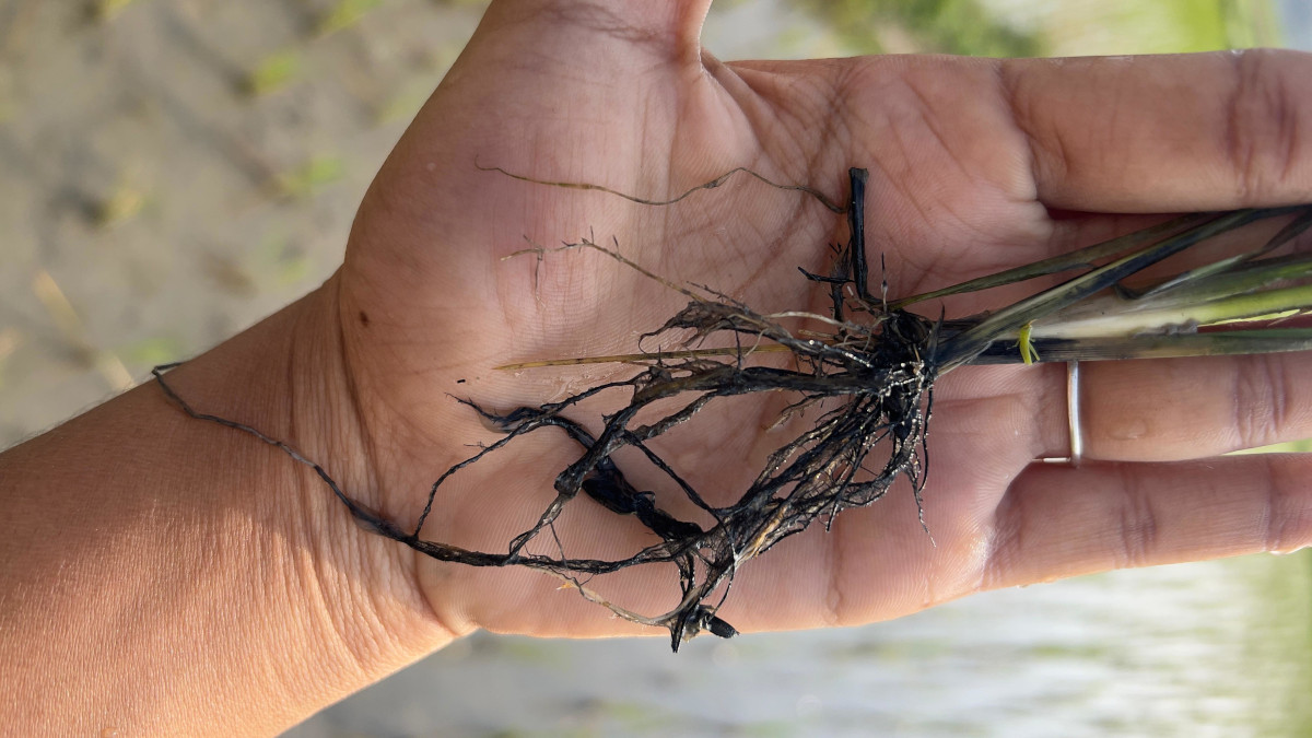 నేల నుంచి దుర్గంద పు వాసన, మొక్కను వేర్లతో బయటకు తీసినపుడు కుళ్ళిన కోడి గుడ్ల వాసన వచ్చును .పంట వేర్లు పూర్తిగా నల్లబడి జీవములేక నేల నుండి పోషకాలను తీసుకునే సామర్ధ్యము తగ్గి మొక్కలు పూర్తిగా చనిపోయే ఆస్కారమున్నది.