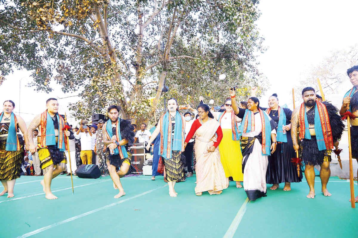 గద్ద్దెల ప్రాంగణంలో హాకా నృత్య ప్రదర్శన