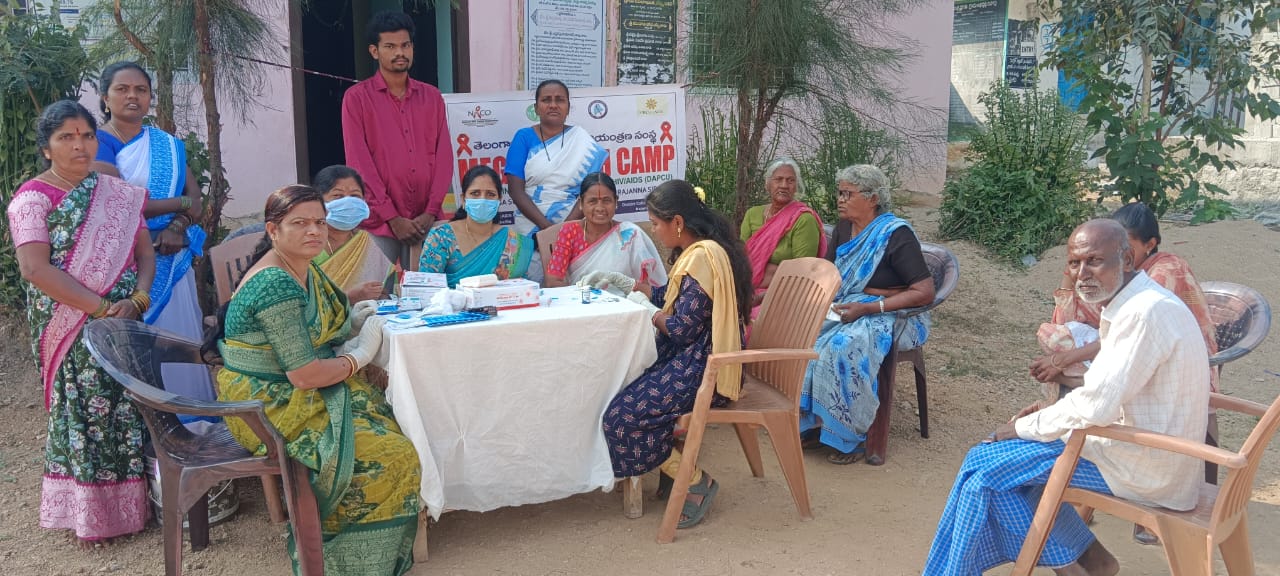 ప్రజలకు అందుబాటులోనే వైద్య సేవలు అందుతున్నాయని సర్పంచ్ మోర నిర్మల అన్నారు. మండలంలోని పద్మ నగర్ లో బుధవారం తెలంగాణ రాష్ట్ర ఎయిడ్స్ నియంత్రణ సంస్థ ఆదేశాల మేరకు రాజన్న సిరిసిల్ల జిల్లా వైద్య,ఆరోగ్యశాఖ సంపూర్ణ సురక్ష కేంద్ర జిల్లా ఆసుపత్రి సహకారంతో తంగళ్ళపల్లి ప్రాథమిక ఆరోగ్య కేంద్రం ఆధ్వర్యంలో మెగా హెల్త్ క్యాంపు నిర్వహించారు. గ్రామంలో ఉన్న దాదాపు 100కు పైగా గ్రామస్తులకు బీపీ, షుగరు, హెచ్ఐవి, సిఫిలిస్ హెపటైటిస్ బి, సి రక్త పరీక్షలు నిర్వహించారు. ఈ సందర్భంగా సర్పంచ్ మాట్లాడుతూ గ్రామాల్లో నివసిస్తున్న ప్రజలందరికీ వైద్య సేవలు అందుబాటులో ఉండేందుకే హెల్త్ క్యాంపులను గ్రామాల్లో ఏర్పాటు చేసి వైద్య సేవలు అందిస్తున్నారన్నారు. ప్రజలందరూ ఇలాంటి క్యాంపులను సద్వినియోగపరుచుకోవాలని సూచించారు. ఈ హెల్త్ క్యాంప్ ను మెడికల్ ఆఫీసర్, ఐ సి టి సి కౌన్సిలర్ గంగాధర్ పర్యవేక్షించారు. ఈ కార్యక్రమంలో పంచాయతీ సెక్రెటరీ ప్రశాంత్, పద్మ నగర్ ఏ ఎన్ ఎం జ్యోతి, సంపూర్ణ సురక్ష కేంద్ర మేనేజర్ సుష్మా, ఓ ఆర్ డబ్ల్యు లు రమ, అభిరామ్ ,ఆశా కార్యకర్తలు, పంచాయతీ సిబ్బంది గ్రామ ప్రజలు పాల్గొన్నారు