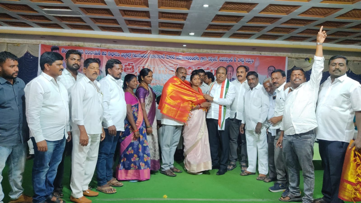 తెలంగాణ గ్రామ పంచాయతీ రెండవ దశ ఎన్నికల్లో గెలుపొందిన కాంగ్రెస్ పార్టీ అభ్యర్థులకు నిజామాబాద్ రూరల్ ఎమ్మెల్యే శ్రీ డాక్టర్ రేకులపల్లి భూపతి రెడ్డి జక్రాన్ పల్లి గ్రామంలో నూతనంగా ఎన్నికైన సర్పంచ్ శ్రీమతి బండి పద్మ సత్యంను అలాగే వార్డు మెంబర్లు శ్రీమతి దేవగల స్వర్ణలత బాబు గార్లని సన్మానించడం జరిగింది. ఈ కార్యక్రమంలో నిజామాబాద్ రూరల్ యూత్ వైస్ ప్రెసిడెంట్ సోప్పరి వినోద్ , మాజీ సర్పంచ్ కాటిపల్లి నర్సారెడ్డి జెడి మల్లేష్ మైనారిటీ అధ్యక్షులు సైకిల్ అక్బర్ ఎస్సీ సెల్ అధ్యక్షులు గన్న లక్ష్మణ్ మండల సోషల్ మీడియా కోఆర్డినేటర్ నట తిరుపతి జలం గాంధీ బుయ్య చిన్న నరసయ్య సంజీవ్ అనుదీప్ రోహిత్ కాంగ్రెస్ నాయకులు కార్యకర్తలు పాల్గొన్నారు.