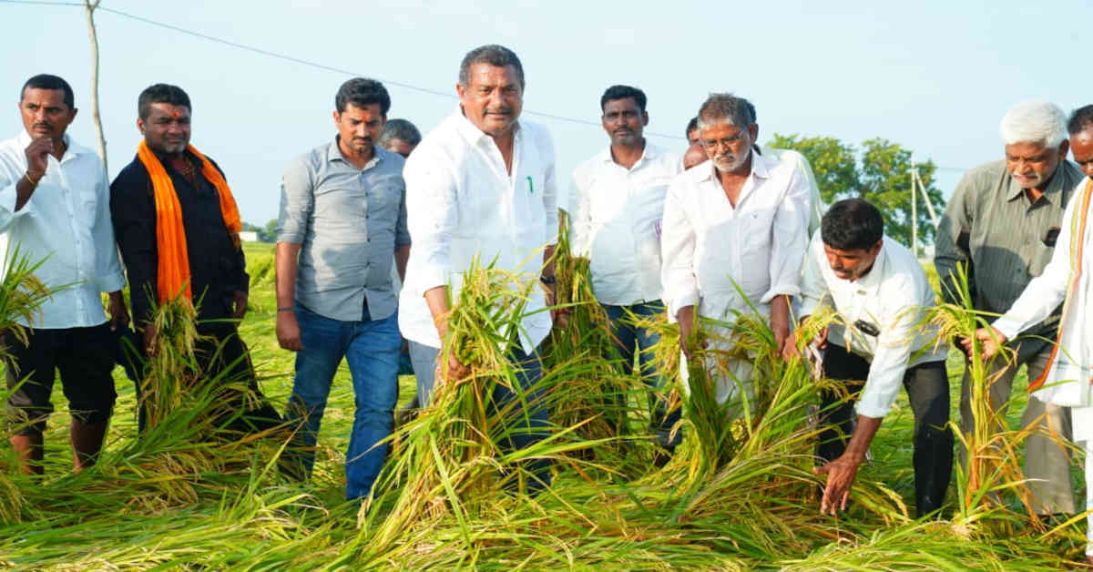 గత మూడు రోజులుగా కురుస్తున్న వర్షాల కారణంగా నేలబారిపోయిన పంట పొలాలను మిర్యాలగూడ ఎమ్మెల్యే బత్తుల లక్ష్మారెడ్డి  పరిశీలించారు. నియోజవర్గంలోని పలు గ్రామాలలో గురువారం నెలకొరిగిన వరి పంటను నేరుగా పరిశీలించి వివరాలు అడిగి తెలుసుకున్నారు. ఈ సందర్భంగా ఆయన మాట్లాడుతూ మొంథా తుఫాన్ దాటికి పడిపోయిన పంటపొలాల వివరాలను వ్యవసాయ అధికారులు క్షేత్రశాలలో సర్వే చేసి సేకరించాలని కోరారు. రైతులు ఫోన్ చేసిన వెంటనే అధికారులు అక్కడికి వెళ్లి నష్టపోయిన పంటల వివరాలను నమోదు చేసుకోవాలని ఆదేశించారు. పంట నష్టపోయిన రైతులకు పరిహార అందేలా అధికారులు చర్యలు తీసుకోవాలని కోరారు. ఈ కార్యక్రమంలో కాంగ్రెస్ మండల నాయకులు శంకర్ రెడ్డి, కోడి రెక్క సారీ, నాయకులు రైతులు పాల్గొన్నారు.