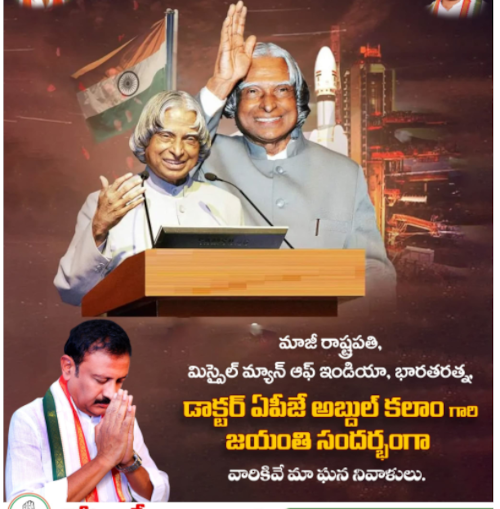శాస్త్ర సాంకేతిక రంగాల్లో దేశ ప్రతిష్టతను ఇనుమడింపజేసి, తుది శ్వాస వరకు భరతమాత సేవలో తరించిన క్షిపణి పితామహుడు, మాజీ రాష్ట్రపతి, భారతరత్న డాక్టర్ ఏపీజే అబ్దుల్ కలాం అని ఎమ్మెల్యే తోట లక్ష్మీకాంతారావు అన్నారు. నేడు కలాం జయంతి సందర్భంగా వారి దివ్య స్మృతికి ఆయన ఘన నివాళులు అర్పించారు.