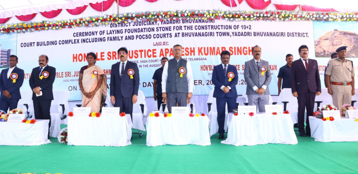 న్యాయవాదులు నైతిక విలువలు పాటించాలని, కోర్టులు కక్షిదారులకు సత్వర న్యాయం అందించాలని  తెలంగాణ రాష్ట్ర ఉన్నత న్యాయస్థానం చీఫ్ జస్టిస్ అపరేష్ కుమార్ సింగ్ కోరారు. శనివారం యాదాద్రి భువనగిరి జిల్లా కోర్టు నూతన భవన నిర్మాణ శంకు స్థాపన కార్యక్రమానికి తెలంగాణ రాష్ట్ర ఉన్నత న్యాయస్థానం చీఫ్ జస్టిస్ అపరేష్ కుమార్ సింగ్ ముఖ్య అతిథిగా హాజరయ్యి జిల్లా కోర్టుల నూతన భవన శంకు స్థాపన  శిలా పలకాన్ని ఆవిష్కరించారు. ఈ సందర్భంగా ఆయన మాట్లాడుతూ నూతన భవనాన్ని కాల పరిమితిలో పూర్తి చేయాలని ఆకాంక్షించారు. నేడు జాతీయ బాలిక దినోత్సవం సందర్భంగా న్యాయమూర్తులు బాలికలకు శుభాకాంక్షలు తెలిపి వారిని ప్రశంసించారు.