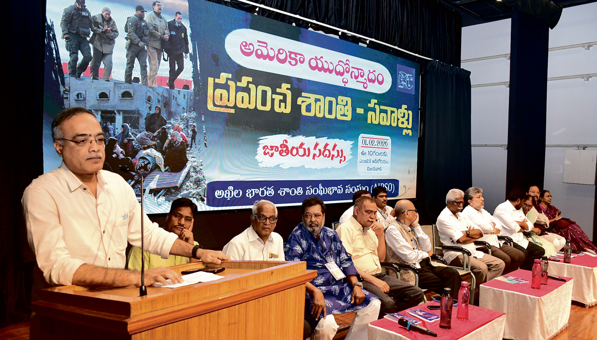 అమరావతి: అగ్రరాజ్యం అమెరికా సృష్టిస్తున్న యుద్ధోన్మాద చర్యలను వ్యతిరేకిస్తూ ప్రపంచ శాంతి కోసం ఉద్యమించాలని అఖిలభారత శాంతి సంఘీభావ సంఘం (ఐప్సో) సదస్సులో వక్తలు పిలుపునిచ్చారు. ఎఐపిఎస్ఒ జాతీయ కౌన్సిల్ సమావేశాల సందర్భంగా ‘అమెరికా యుద్ధోన్మాదం’- ప్రపంచ శాంతి సవాళ్లు’ అనే అంశంపై జాతీయ సదస్సు ఐప్సో జాతీయ అధ్యక్షులు హర్చంద్భట్ సింగ్ అధ్యక్షతన విజయవాడలోని ఎంబి విజ్ఞాన కేంద్రంలో ఆదివారం జరిగింది. ఈ సందర్భంగా శాంతి సంఘం అధ్యక్షులు పల్లబ్సేన్ గుప్తా మాట్లాడుతూ.. అమెరికా యుద్ధోన్మాద వాతావరణాన్ని సృష్టిస్తూ అనేక దేశాలపై పెత్తనం చెలాయిస్తోందని ఆందోళన వ్యక్తం చేశారు. అమెరికా మద్దతుతో ఇజ్రాయిల్ అధ్యక్షులు నెతన్యాహు పాలస్తీనాపై యుద్ధాన్ని కొనసాగిస్తున్నారని ఆందోళన వ్యక్తం చేశారు. ఇజ్రాయిల్ పాలస్తీనాపై నిరంతరంగా జరిపిన దాడిలో 72 వేల మంది ప్రజలు మరణించారని, 10 లక్షల మందికి పైగా గాయాలపాలై చికిత్స పొందుతున్నారని ఆవేదన వ్యక్తం చేశారు. ప్రపంచ శాంతికి సామ్రాజ్యవాదం ఎలాంటి విఘాతాన్ని కల్గిస్తుందో ఇటీవల వెనిజులా అధ్యక్షులు మదురొను, అతని భార్యను ఎత్తుకెళ్లడం ఉదాహరణ అని వివరించారు. ఐప్సో ప్రధాన కార్యదర్శి ఆర్ అరుణ్కుమార్ మాట్లాడుతూ.. గాజాలో నెలకొన్న యుద్ధ వాతావరణం పాఠశాలల్లో పాఠాలు వినకముందే యుద్ధం నుంచి ఎలా బయటపడాలో పిల్లలు అక్కడ నేర్చుకుంటున్నారని తెలిపారు. మనిషి, మనిషి కలిసి మంచి సమాజాన్ని నిర్మించుకోగలుగుతామనే వయసులో మరో మనిషితో పోరాడితేనే బతుకనే దుర్మార్గపు వాస్తవాన్ని గాజాలో నేర్చుకుంటున్నారని చెప్పారు. మనం కోరుకుంటున్న సమాజం ఇది కాదని, రాబోయే తరాలకు మనం ఇవ్వాల్సిన ప్రపంచం ఇలాంటిది కాదన్నారు. పాలస్తీనా, గాజాలో విమానాల శబ్దాలు, బాంబుల మోతే పిల్లలకు వినపడుతుందని, ఇజ్రాయిల్ చేసిన నరసంహరంలో 22 వేల మంది పిల్లలు మరణించారని ఆవేదన వ్యక్తం చేశారు. ప్రపంచంలో యుద్ధాల సంఖ్య పెరుగుతోందని, 2024లో 61 చోట్ల, 2025లో 72 చోట్ల యుద్ధాలు జరిగాయని తెలిపారు. అమెరికా తన అధిపత్యాన్ని ప్రపంచ దేశాల్లో నిలబెట్టుకొని చెలాయించాలని చూస్తోందన్నారు. సోషలిస్టు దేశాలుగా ఉన్న క్యూబా, చైనాతో పాటు వెనిజులా, ఇరాన్, రష్యా.. అమెరికా అధిపత్యానికి అడ్డుగా ఉన్నాయని తెలిపారు. ఈ దేశాలన్నింటినీ బలహీనపరిచి ప్రభుత్వాలను కూలదోయాలని ప్రయత్నాలు చేస్తోందన్నారు. అమెరికాకు భారత్ అనుకూలమైన విదేశాంగ విధానాన్ని కొనసాగిస్తే ప్రపంచ దేశాలు, ప్రజానీకం ముందు అపహాస్యం కాబడతామని ఆందోళన వ్యక్తం చేశారు. ప్రపంచంలోనే అతిమితవాదులంతా ఏకమవుతూ ప్రపంచాన్ని ఉన్మాదం వైపు తీసుకెళ్తూ పీడిత ప్రజలను అణచివేసేందుకు ప్రయత్నిస్తున్నారని తెలిపారు. మానవాళి భవిష్యత్తు బతిక