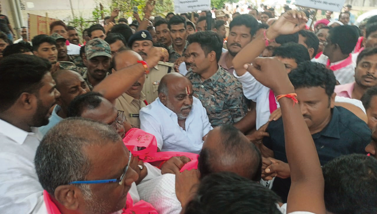 – పోలీసులు, బీఆర్‌ఎస్‌ నాయకుల మధ్య తోపులాట