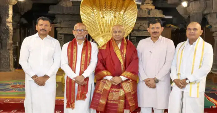 నవతెలంగాణ – హైదరాబాద్: సీనియర్ ఐఏఎస్ అధికారి ముద్దాడ రవిచంద్ర తిరుమల తిరుపతి దేవస్థానం నూతన ఎగ్జిక్యూటివ్ ఆఫీసర్గా ఈరోజు బాధ్యతలు స్వీకరించారు. తొలుత భూవరాహ స్వామిని దర్శించుకున్న ఆయన, అనంతరం శ్రీవారి సన్నిధిలో బంగారు వాకిలి వద్ద టీటీడీ బోర్డు ఎక్స్అఫీషియో సభ్యుడిగా ప్రమాణ స్వీకారం చేశారు. అదనపు ఈవో వెంకయ్య చౌదరి ఆయనతో ప్రమాణం చేయించారు.