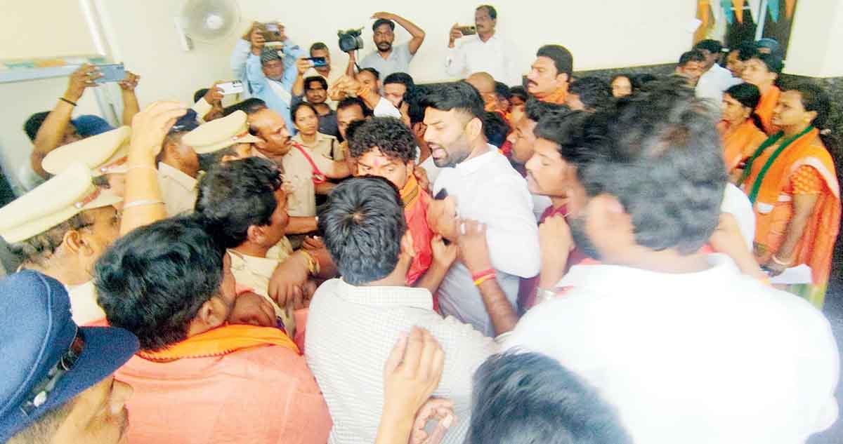 – తీవ్ర ఉద్రిక్తత.. నిలువరించేందుకు పోలీసుల యత్నం