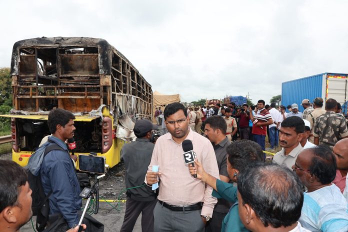నవతెలంగాణ – జోగులాంబ గద్వాల : కర్నూలు జిల్లా కల్లూరు మండలం చిన్నటేకూరు గ్రామ సమీపంలో శుక్రవారం తెల్లవారుజామున జరిగిన ప్రైవేట్ ట్రావెల్స్ బస్సు ప్రమాద ఘటనలో మృతిచెందిన, క్షతగాత్రుల కుటుంబ సభ్యులకు అవసరమైన సహాయక చర్యలు చేపట్టినట్లు జోగులాంబ గద్వాల జిల్లా కలెక్టర్ బి. ఎం. సంతోష్ తెలిపారు. తెలంగాణ ముఖ్యమంత్రి రేవంత్ రెడ్డి ఆదేశాల మేరకు శుక్రవారం ఉదయం గద్వాల జిల్లా ఎస్పీ శ్రీనివాసరావు తో కలిసి ప్రమాద ఘటన స్థలాన్ని కలెక్టర్ పరిశీలించారు. హైదరాబాదు నుంచి బెంగళూరు బయలుదేరిన కావేరి ప్రైవేట్ ట్రావెల్స్ బస్సులో మొత్తం 41 మంది ప్రయాణికులతో పాటు డ్రైవర్, క్లీనర్ ఉన్నట్లు తెలిసిందన్నారు. ఈ ఘటనలో 20 మంది ప్రయాణికులు మృతి చెందినట్లు ప్రాథమికంగా తెలిసిందన్నారు.