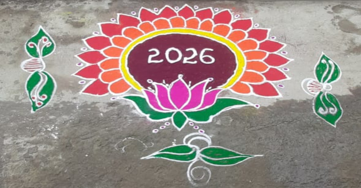 గురువారం 2026 నూతన సంవత్సరం లోకి అడుగు పెట్టగానే ప్రతి ఇంటి ముందర ఆకర్షించే విధంగా నూతన సంవత్సర ముగ్గులు పొటా పోటీగా కనిపించాయి. ప్రతి ఒక్కరూ నూతన సంవత్సరం వెల్కమ్ అంటూ ఇండ్ల ముందర రంగోలి ముగ్గులు వేయడం ప్రతి ఒక్కరిని ఆకర్షించాయి. 2026 నూతన సంవత్సరంలో ప్రతి ఒక్కరు ఆనందంగా సుఖంగా కలిసి మెలిసి జీవించే విధంగా ముగ్గుల రూపంలో శుభాకాంక్షలు కనిపించాయి.