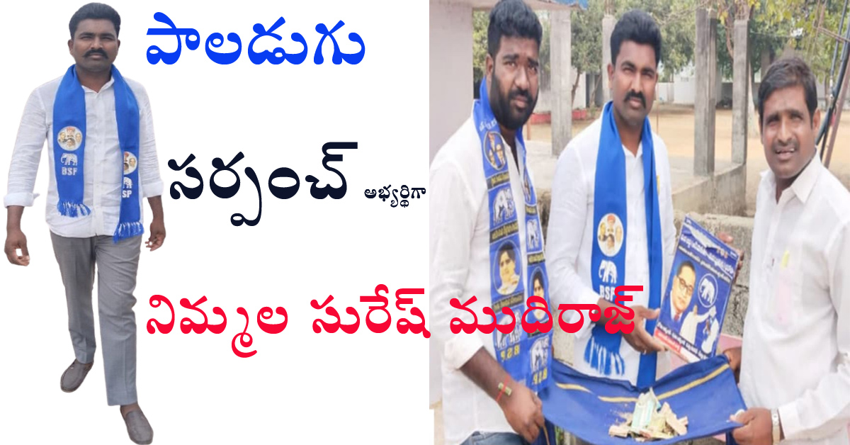 న‌వ‌తెలంగాణ‌-హైద‌రాబాద్: యాద్రాది భువ‌న‌గిరి జిల్లా మోత్కూరు మండ‌లం పాల‌డుగు గ్రామ స‌ర్పంచ్ అభ్య‌ర్థిగా నిమ్మల సురేష్ ముదిరాజ్(BSP) నామినేష‌న్ దాఖలు చేశారు. ఆ పార్టీ నాయ‌కులతో క‌లిసి నామినేష‌న్ ప‌త్రాల‌ను బుధ‌వారం ఎన్నిక‌ల అధికారుల‌కు అంద‌జేశారు. అంత‌కుముందు గ్రామంలోని బీఆర్. అంబేద్క‌ర్ విగ్ర‌హానికి పూల‌మాల వేసి నివాళ్లు అర్పించారు. బ‌హుజ‌నుల అభివృద్ధి కోసం, గ్రామాభివృద్ధికి కోసం స‌ర్పంచ్ ప‌ద‌వికి పోటీ చేస్తున్నాన‌ని, యువ‌తీయువ‌కులు, గ్రామ‌స్తులంతా త‌న‌కు మ‌ద్ద‌తుగా నిల‌వాల‌ని, ఓటు వేసి త‌న‌ను గెలిపించాల‌ని బీఎస్పీ స‌ర్పంచ్ అభ్య‌ర్థి నిమ్మ‌ల సురేష్ కోరారు.