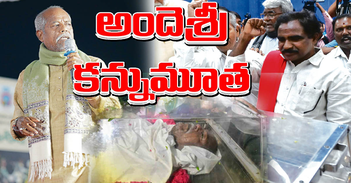 ‘మాయమైపోతున్నడమ్మా మనిషన్నవాడు…’ అంటూ ఆవేదన వ్యక్తం చేసిన కవి, ‘జయజయహే తెలంగాణ…’ అంటూ రాష్ట్ర గీతాన్ని అందించిన ప్రముఖ రచయిత అందెశ్రీ (64) ఇకలేరు. నిద్ర నుంచి లేవకుండానే సోమవారం ఉదయం ఆయన శాశ్వత నిద్రలోకి వెళ్లిపోయారు. హైదరాబాద్ లాలాగూడలోని వినోభానగర్లోని ఇంట్లో భార్య మల్లమ్మ నిద్ర లేపే సమయానికే ఆయన అచేతనంగా ఉన్నారు. దాంతో కుటుంబ సభ్యులు అందెశ్రీని ఉదయం 5 గంటల సమయంలో సికింద్రాబాద్లోని గాంధీ ఆస్పత్రికి తరలించారు. అయితే అప్పటికే ఆయన మరణించినట్టు వైద్యులు తెలిపారు. దాంతో లాలాగూడతోపాటు యావత్ తెలంగాణ సమాజంలో విషాదఛాయలు అలుముకున్నాయి. అందెశ్రీ భౌతికకాయాన్ని కుటుంబ సభ్యులు ఉదయం 9:30 గంటల సమయంలో ఇంటికి తీసుకొచ్చి 20 నిమిషాలపాటు ఉంచారు. ఇరుకైన ఇల్లు, వీధి కూడా అత్యంత ఇరుకుగా ఉండటంతో ఆయన భౌతికకాయాన్ని లాలాపేట్లోని ప్రొఫెసర్ జయశంకర్ ఇండోర్ స్టేడియానికి తరలించారు. సాయంత్రం ప్రత్యేకంగా ఏర్పాటు చేసిన వేదికపై మృతదేహాన్ని ఉంచారు.