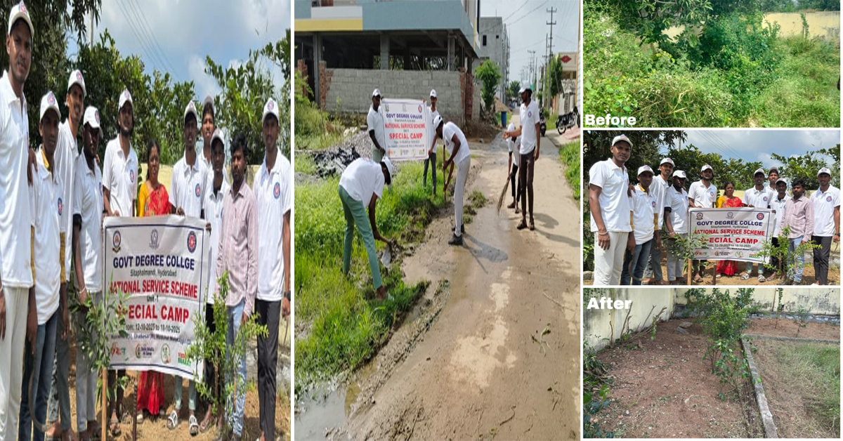న‌వ‌తెలంగాణ‌-హైద‌రాబాద్‌: ఘట్కేసర్ మండలం కొర్రేముల గ్రామంలో మూడో రోజు సితాఫలమండి ప్రభుత్వ డిగ్రీ కళాశాల NSS యూనిట్-1 వాలంటీర్లు శ్ర‌మ‌దానం నిర్వ‌హించారు. గ్రామంలోని ప్రాథమిక పాఠశాల, అంగనవాడి కేంద్రాలు డా.బిఆర్. అంబేద్కర్ త‌దిత‌ర ప్రాంతాల్లో క్లీన్ అండ్ గ్రీన్ కార్యక్రమాన్ని చేప‌ట్టారు.