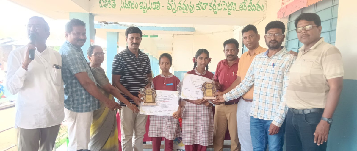 రాష్ట్ర స్థాయి ఫిజికల్ సైన్స్ టాలెంట్ టెస్ట్ 5,6 స్థానాలను సాధించిన యం.డి.శైలాని,బి.సిరి చందనలను, గైడ్ టీచర్స్ వి.కుమారస్వామి, బి.వెంకటేశ్వర్లును ప్రధానోపాధ్యాయులు ఈ సందర్భంగా అభినందించారు. ఈ కార్యక్రమంలో సైన్స్ ఉపాధ్యాయులు, శ్రీనివాస్, జయభాస్కర్, జగన్ నాయక్, శివలింగం, స్వర్ణలత, పూర్ణచందర్, శ్రీధర్, సరస్వతి, రాజేందర్, మహేష్, వినోద్ పాల్గొన్నారు.