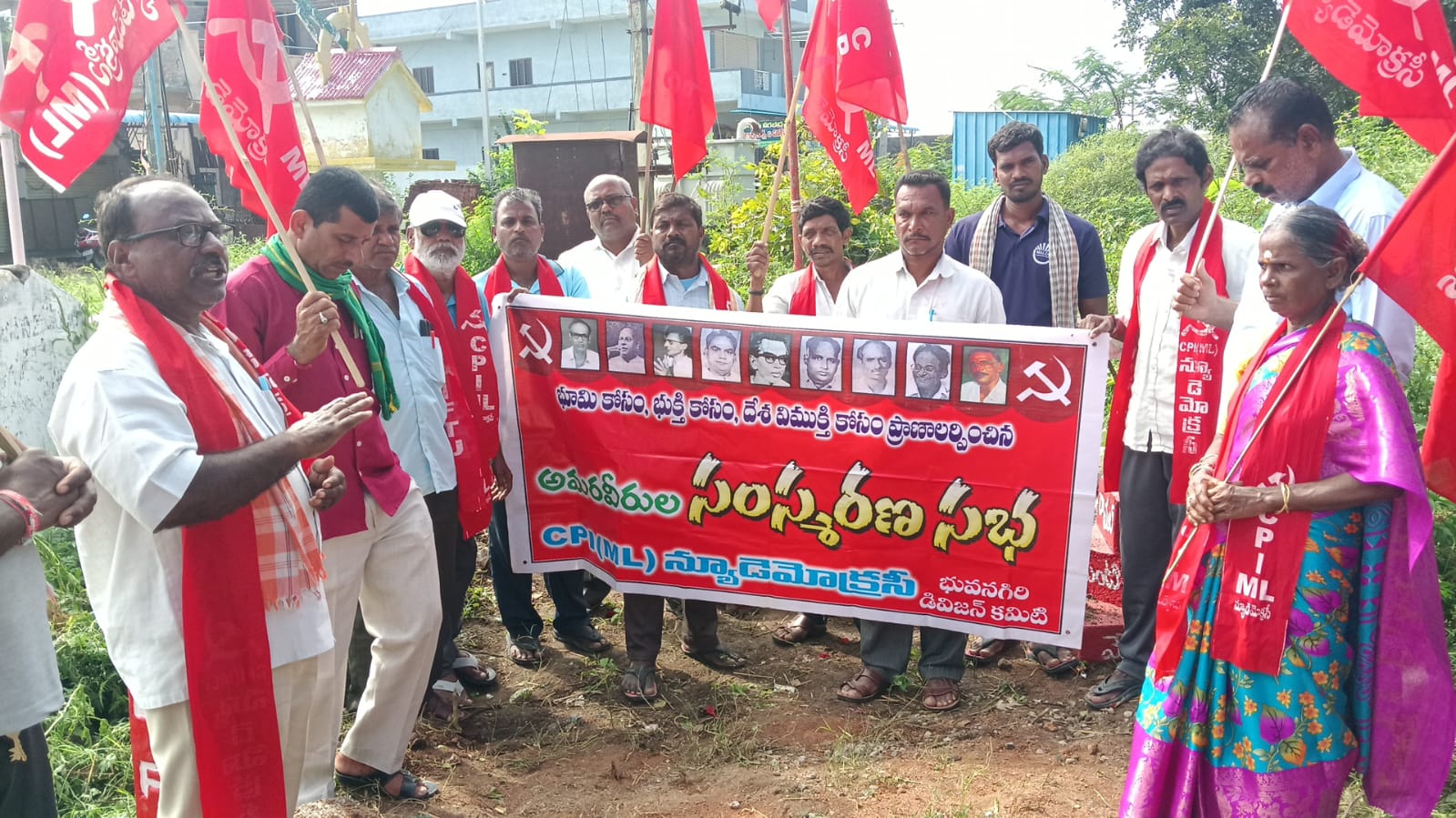 ఈ కార్యక్రమంలో ఏ ఐ కే ఎం ఎస్ రాష్ట్ర అద్యక్షులు మామిడాల భిక్షపతి,సీపీఐ ఎంఎల్ న్యూడెమోక్రసీ జిల్లా కార్యదర్శి ఆర్.జనార్ధన్,డివిజన్ కార్యదర్శి ఇక్కిరి సహదేవ్, జిల్లా నాయకులు చిర బోయిన కొమురయ్య,మామిడాల బాల మల్లేష్, గుజ్జుల కిష్టారెడ్డి, ఎమ్మ బాలరాజు,దొంతి పుష్ప,దొంతి భిక్షపతి,దయ్యాల సిద్దులు,బొద్దుల మహేందర్,యెర్రగోకుల రంజిత్,మేక ఉపేందర్,జూకంటి చంద్రయ్య,పుప్పాల మల్లయ్య, కోయ బాబు, బండి సిద్దులు,కోజిగా వీరయ్య తదితరులు పాల్గొన్నారు.