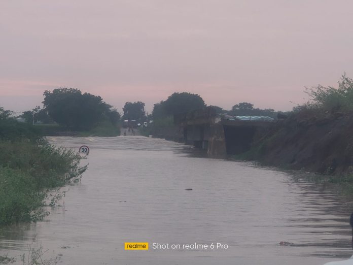 నవతెలంగాణ-మహబూబాబాద్ : మహబూబాబాద్ జిల్లాలో వరద ఉద్ధృతి కొనసాగుతుంది. రెండో రోజు గురువారం మానుకోట జిల్లా వ్యాప్తంగా విద్యాసంస్థలకు డిఇఓ దక్షిణామూర్తి సెలవులు ప్రకటించారు. మోందా తుఫాన్ ఎఫెక్ట్తో ఆఖరు మున్నేరు పాలేరు వాగుల పరివాహకంలో వేలాది ఎకరాల్లో పంట పొలాలు నీటిమరిగాయి. మహబూబాబాద్ కు ఖమ్మం వరంగల్ హైదరాబాద్ కు రాకపోకలు స్తంభించాయి. వర్షం బుధవారం సాయంత్రం నుంచి నిలిచిపోయినప్పటికీ వరంగల్లో కురిసిన భారీ వర్షాల వరద ల మూలంగా మానుకోటలో పాలేరు ఆటేరుల మూలంగా మానుకోటలో పాలేరు ఆకేరు మున్నేరు వాగులు పొంగిపొర్లుతున్నాయి. మహబూబాబాద్ – నర్సంపేట రహదారిలో మానుకోట శివారులో ఉన్న జమల పెళ్లి వద్ద బ్రిడ్జి పైనుంచి నీళ్లు వెళుతుండడంతో సిఐ గట్ల మహేందర్ రెడ్డి ట్రాఫిక్ ను నిలిపివేశారు . గత రెండు రోజులుగా అక్కడ ట్రాఫిక్ స్తంభించిపోయింది వరంగల్ కు రాకపోకలు స్తంభించిపోయాయి. మహబూబాబాద్ కే సంద్రం రహదారిలో ఈదుల పూసపెల్లి వద్ద రాళ్లవాగు పొంగిపొర్లు పోలీసులు రాకపోకలు నిలిచి పోయాయి. మహబూబాబాద్ తొర్రూర్ వెళ్లే రహదారిలో నెల్లికుదురు మండలం ఆలేరు గ్రామం వద్ద ఆలేరు చెరువు పొంగి పొలడంతో రోడ్డు పైనుంచి నీళ్లు పోతున్నడంతో ట్రాఫిక్ నిలిచిపోయింది. మహబూబాబాద్ ఖమ్మం వెళ్లే రహదారిలో ములకలపల్లి వద్ద పాలేరు వాగు పొంగిపొర్లు తొండడంతో రాకపోకలు నిలిచిపోయాయి. మహబూబాబాద్ ప్రజలతో ఇతర ప్రాంతాలు ఖమ్మం వరంగల్ నర్సంపేట హైదరాబాద్ తో తొర్రూరు నెల్లికుదురు ప్రాంతాలకు రాకపోకలు స్తంభించిపోయాయి. భారీ వర్షాల మూలంగా విజయవాడ టు హైదరాబాద్ వెళ్లే శాతవాహన ఎక్స్ప్రెస్ ను రద్దు చేశారు. ఇతర గౌతమి చార్మినార్ కోణార్క్ గోల్కొండ సింగరేణి రైలు నడుస్తున్నాయి. గురువారం వర్షం పూర్తిగా వెలిసినప్పటికీ ఆ పేరు పాలేరు మున్నేరు వాగులు పొంగి పొల్లడంతో ట్రాఫిక్ ని నిలిచిపోయింది. రెవెన్యూ వ్యవసాయ శాఖ అధికారులు నష్టాన్ని అంచనా వేస్తున్నారు . మహబూబాబాద్ వేసేమహబూబాబాద్ వేసే మార్కెట్లో స్వల్పంగా మొక్కజొన్నలు తడిచాయి. మానుకోట వ్యవసాయ మార్కెట్ కు 30, 31, నవంబర్ 1, నవంబర్ 2 తేదీల్లో సెలవులు ప్రకటించారు. పెద్ద గూడూరు మండలం గాజుల గట్టు గ్రామంలో ఇంటి గోడ కూలి గాజుల రామక్క 65 అని వృద్ధురాలు మృతి చెందారు. పోలీసులు మున్సిపల్ గ్రామపంచాయతీ సిబ్బంది అనునిత్యం ప్రజలకు సేవలు అందించడం మునిగిపోయారు.