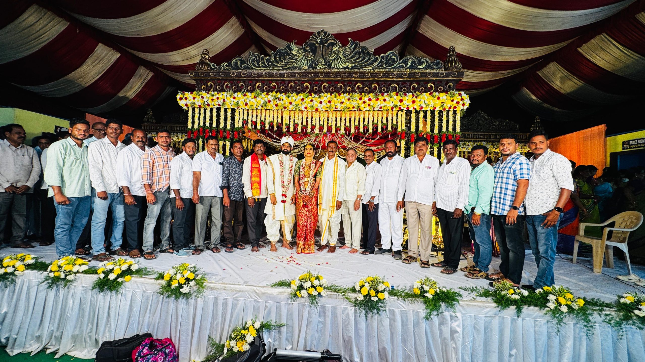 నవతెలంగాణ – మల్హర్ రావు: మండలంలోని పెద్దతూoడ్ల గ్రామానికి చెందిన ప్రవళిక-సుగ్యన్ వివాహం శనివారం మంథనిలోని పంక్షన్ హాల్లో అంగరంవైభవంగా నిర్వహించారు. ఈ వివాహమహోత్సవానికి తాడిచెర్ల ప్రాథమిక వ్యవసాయ సహకార సంఘం చైర్మన్ ఇప్ప మొండయ్య హాజరై వదువరులను ఆశీర్వదించారు.నూతన దంపతులు ఒక్కరినొక్కరు అనున్యంగా జీవించాలని ఆకాంక్షించి శుభాకాంక్షలు తెలియజేశారు.ఈ కార్యక్రమంలో కాంగ్రెస్ నాయకులు జక్కుల వెంకటస్వామి యాదవ్, రాజు నాయక్, అడ్వాల మహేష్, రమణారెడ్డి, మదుకర్, శ్రీనివాస్, శివ, ప్రశాంత్, శ్రీదర్, పాల్గొన్నారు.