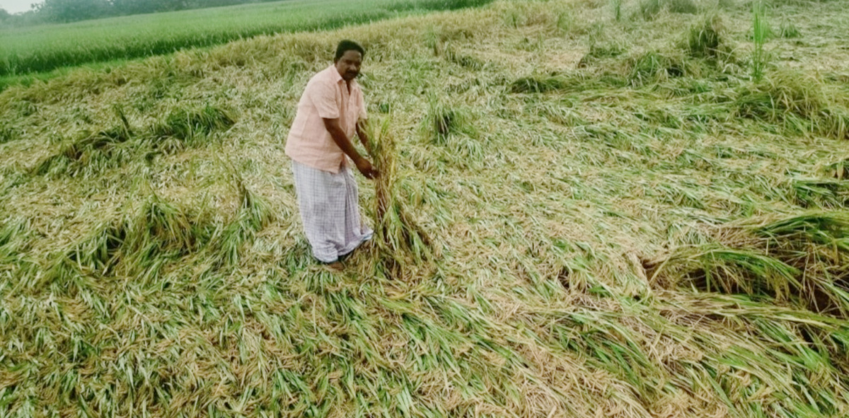 మోంథా తుఫాన్ కారణంగా చేతికొచ్చిన పంటలు నేలకొరిగాయి. ఆరుగాలం కష్టపడి పంటలు పండించిన రైతులకు ఎంతో నష్టం చేకూరింది. చేతికొ చ్చిన పంటలు కళ్ల ముందే నాశనం అవుతుంటే రైతుల్లో ఆందోళన వ్యక్తమవుతోంది. గత నెలలో కురిసిన వర్షాలతో పత్తి కాయ రాలిపోయిందని, ప్రస్తుతం పొట్టకు వచ్చిన వరిపంట నేలకొరిగింది. దీంతో పెట్టుబడి కూడా వచ్చే అవకాశం లేదని రైతులు వాపోతున్నారు. ప్రభుత్వం తమను ఆదు కోవాలని కోరుతున్నారు.