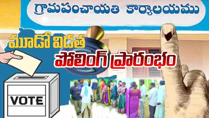 నవతెలంగాణ హైదరాబాద్: తెలంగాణలో చివరి దశ పంచాయతీ ఎన్నికల పోలింగ్ ప్రారంభమైంది. మూడో దశ ఎన్నికలు 182 మండలాల్లో మొత్తం 4,159 గ్రామ పంచాయతీలకు నోటిఫికేషన్ వెలువడగా.. అందులో 11 సర్పంచి పదవులకు నామినేషన్లు దాఖలు కాలేదు. 394 పదవులు ఏకగ్రీవమయ్యాయి. రెండు గ్రామ పంచాయతీల్లో ఎన్నికలపై న్యాయస్థానం స్టే విధించింది. దీంతో మిగిలిన 3,752 సర్పంచి స్థానాలకు గాను 12,652 మంది పోటీ పడుతున్నారు.