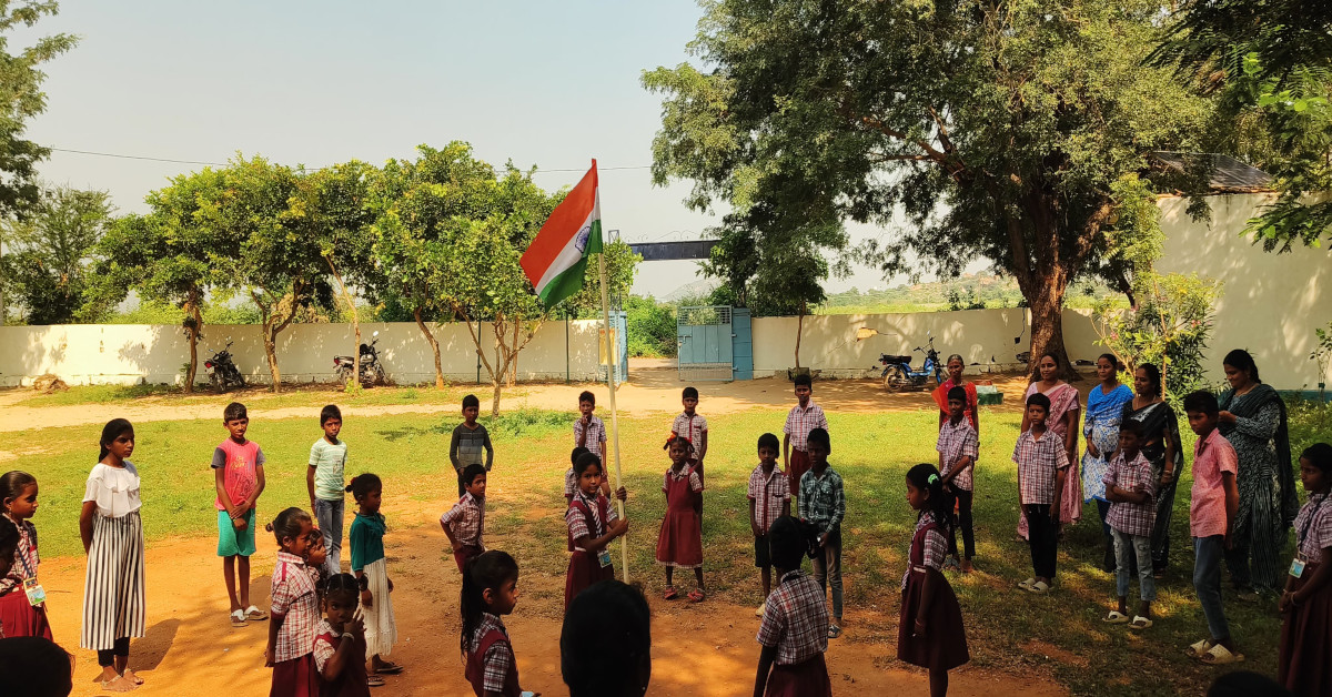 పాఠశాలలో వందేమాతరం గీతం ఆలపించిన గ్రాస్తులు-విద్యార్థులు