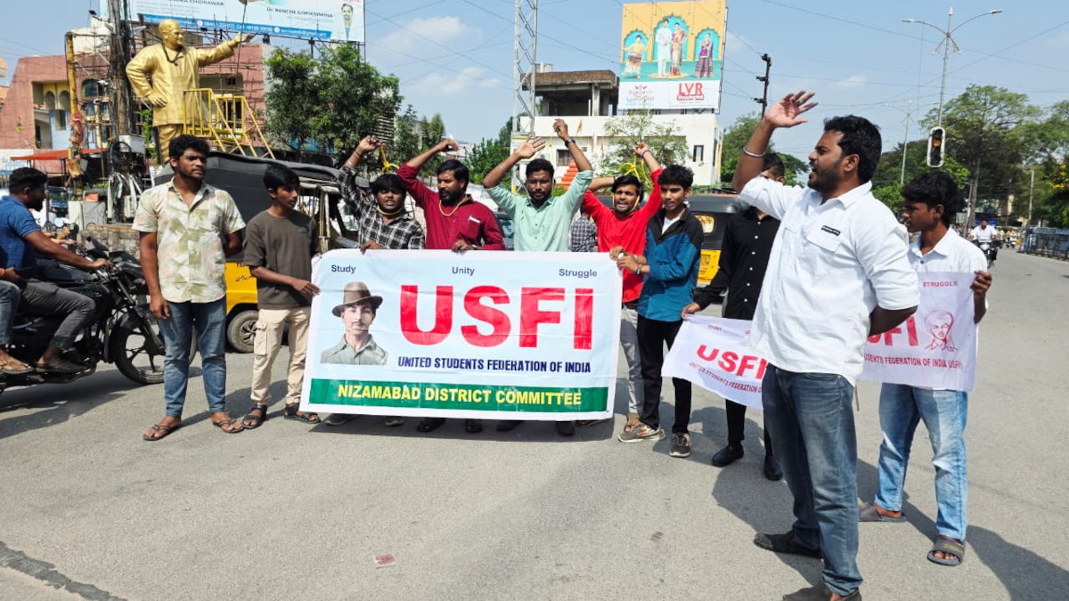 అలాగే ఈనెల మూడో తేదీ నుండి ప్రైవేటు డిగ్రీ,ఇంజనీరింగ్,బి ఫార్మసీ కళాశాలలు నిరవధికగా బందును చేపట్టడం వలన విద్యార్థుల భవిష్యత్తు ప్రశ్నార్ధకంలో ఉన్న ప్రజాప్రతినిధులు స్పందించకపోవడం బాధాకరమని అన్నారు. ఇప్పటికైనా రాష్ట్ర ప్రభుత్వం స్పందించి ప్రైవేటు విద్యాసంస్థల యాజమాన్యాల తో చర్చలు జరిపి పెండింగ్ లో ఉన్న స్కాలర్షిప్ & ఫీజు రియంబర్స్మెంట్ విడుదల చేసే రకంగా చర్యలు తీసుకోకపోతే రాష్ట్రవ్యాప్తంగా అన్ని విద్యార్థి సంఘాల్ని కలుపుకొని లక్షల మంది విద్యార్థులతో రాష్ట్రవ్యాప్త ఉధృతమైన ఉద్యమాలు నిర్వహిస్తామని ఈ సందర్భంగా రాష్ట్ర ప్రభుత్వాన్ని హెచ్చరించారు. ఈ కార్యక్రమంలో యూఎస్ఎఫ్ఐ నగర కార్యదర్శి పోషమైన మహేష్ మరియు యూఎస్ఎఫ్ఐ జిల్లా నాయకులు జవహర్ సింగ్, వేణుగోపాల స్వామి చారి, సురేందర్ చరణ్, సాయి ,ప్రసాద్ విద్యార్థులు పాల్గొన్నారు.