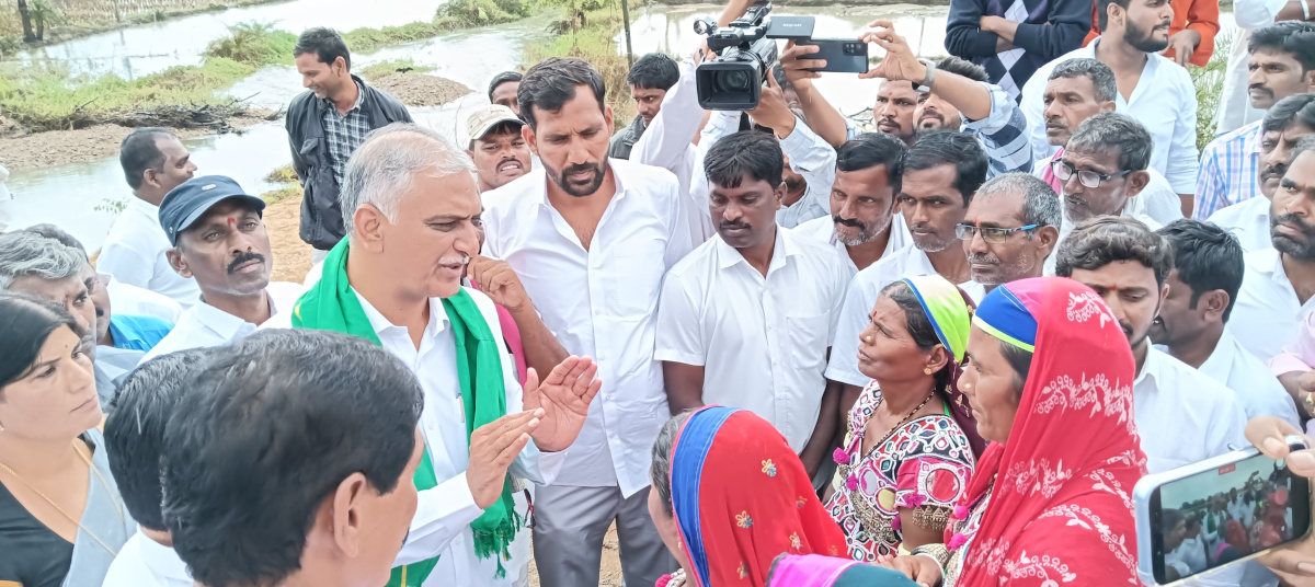 మమ్మల్ని ఆదుకోండి సారు అని బంజారా తాండకు చెందిన గిరిజన మహిళలు సిద్దిపేట మాజీ మంత్రి ఎమ్మెల్యే  తన్నీరు హరీష్ రావును వేడుకున్నారు. ముంపు పంటల పరిశీలనకు వచ్చిన హరీష్ రావును గిరిజన మహిళలు ఆదుకోండి సారూ అన్ని కోల్పోయాం అని వేడుకున్నారు. భారీ వర్షాల కారణంగా పంటలను మునిగిపోయాయి, రైతు బంధు పడలేదు నెలకి 2500 ఇస్తానన్న 2500 ఇస్తలేరు అని వేడుకున్నారు. అన్ని ముఖ్యమంత్రి రేవంత్ రెడ్డి ఇస్తారమ్మ అని హరీష్ రావు బదులిచ్చారు. మాటల ప్రభుత్వమే గాని చేతల ప్రభుత్వం కాదని ప్రతివ చేశారు.