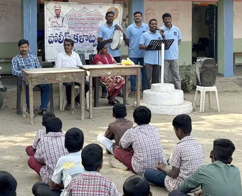 జిల్లా ఎస్పీ అశోక్ కుమార్ ఆదేశాల మేరకు పట్టణంలోని బాలికల ఉన్నత పాఠశాలలో జిల్లా పోలీస్ కళాబృందం ఆధ్వర్యంలో అవగాహన కార్యక్రమం నిర్వహించారు. ఈ సందర్భంగా సైబర్ క్రైమ్,గంజాయి నిర్మూలన, షీటీమ్ సేవలు, మానవ అక్రమ రవాణా, సైబర్ మోసాల నివారణపై విద్యార్థులకు అవగాహన కల్పించారు. ఇటీవల కాలంలో సైబర్ నేరాలు విపరీతంగా పెరుగుతున్నాయని, నేరగాళ్ల మాయమాటలు నమ్మి మోసపోవద్దని కళాబృందం సభ్యులు పాటల ద్వారా వివరించారు. ఎవరైనా సైబర్ మోసాలకు గురైతే వెంటనే 1930 నంబర్కు ఫిర్యాదు చేయాలని తెలిపారు. యువత చెడు వ్యసనాలకు అలవాటు పడకుండా జాగ్రత్తలు తీసుకోవాలని సూచించారు. ఈ కార్యక్రమంలో ప్రధానోపాధ్యాయులు శ్రీపతి రాఘవులు, పోలీస్ సిబ్బంది పూజిత, కమల్, రమేష్, సత్తన్న, ఉపాధ్యాయ బృందం పాల్గొన్నారు.