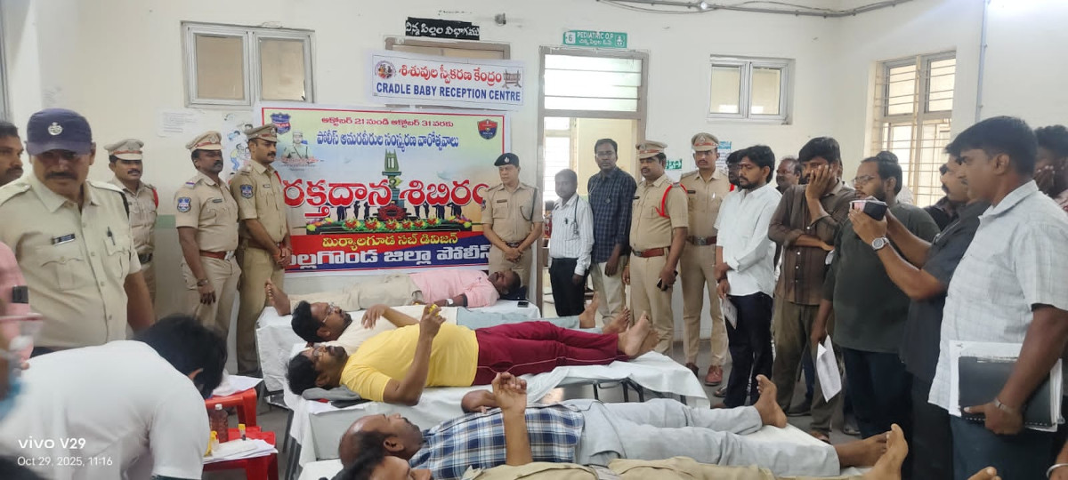 సామాజిక సేవలో పోలీసులు ముందుండాలని డీఎస్పీ రాజశేఖర్ రాజు అన్నారు. పోలీస్ అమరవీరుల దినోత్సవం సందర్భంగా బుధవారం స్థానిక ఏరియా ఆసుపత్రిలో రక్తదాన శిబిరం నిర్వహించారు. ఈ సందర్భంగా ఆయన మాట్లాడుతూ.. పోలీస్ అమరవీరుల సేవలను మారవలేదన్నారు. నిత్యం ప్రజా సేవలో ఉండి ప్రాణాలు కోల్పోయిన పోలీసులు కుటుంబాలను ప్రభుత్వం అండగా ఉంటుందన్నారు. ప్రజల తో ఫ్రెండ్లీగా ఉంటూ ప్రజా సమస్యలు పరిష్కరించాలన్నారు. పోలీసులు బాధ్యతగా విధులు నిర్వహించాలన్నారు. రక్తదానం చేసిన యువకులను, పోలీసులను అభినందించారు. అనంతరం సర్టిఫికెట్లు అందజేశారు. ఈ కార్యక్రమంలో సి ఐ లు నాగభూషణం, సోమ నరసయ్య, పి ఎన్ డి ప్రసాద్, ఎస్ ఐ లు సైదిరెడ్డి, రాంబాబు, వెంకటేశ్వర్లు, కృష్ణయ్య, లక్ష్మయ్య పోలీస్ సిబ్బంది పాల్గొన్నారు.