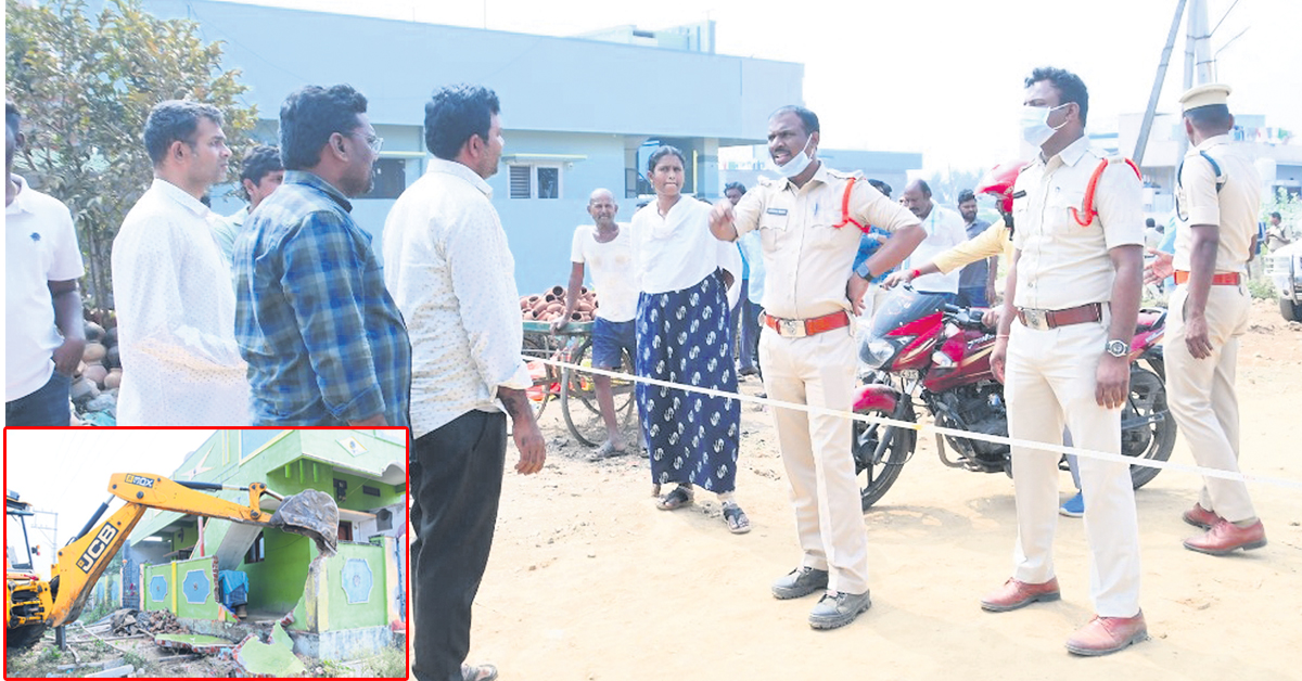 భారీ పోలీసు బందోబస్తుతో దౌర్జన్యం
