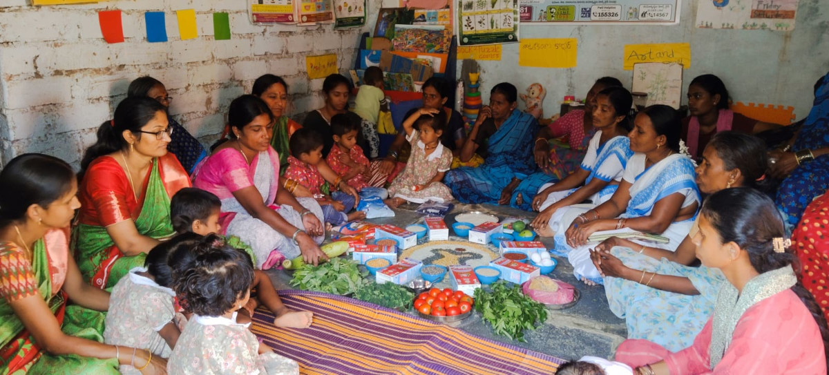 అలాగే రోజువారీ ఆహారంలో చిరుధాన్యాలను భాగంగా చేర్చుకోవాలని, అవి ఆరోగ్యానికి ఎంతో మేలు చేస్తాయని తెలిపారు. చిన్నారులకు, కిశోర బాలికలకు పౌష్టికాహారం తీసుకునే విధానంపై అవగాహన కల్పించారు. ఈ కార్యక్రమంలో అంగన్ వాడి టీచర్లు సుమలత, మమత, స్వరూప, ఆశలు, గర్భిణీలు, బాలింతలు, చిన్నారులు పాల్గొన్నారు.