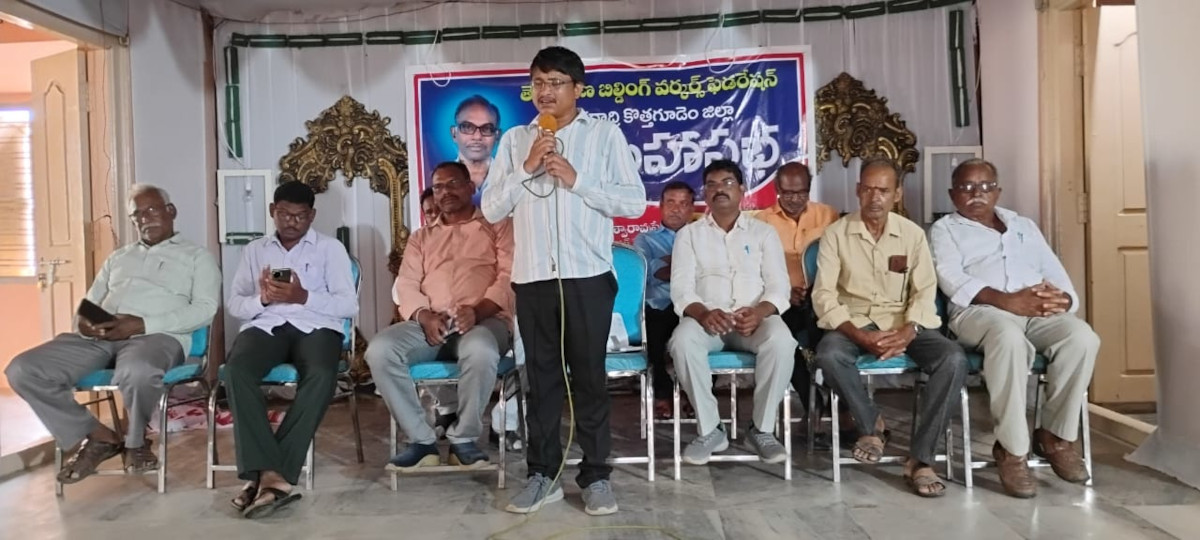 సీఐటీయూ అనుబంధ బిల్డింగ్ అండ్ అధర్ కన్స్ట్రక్షన్ సంఘం జిల్లా 4 వ మహాసభలను శనివారం అశ్వారావుపేట లోని శ్రీ సత్యసాయి కళ్యాణ మండపంలో నిర్వహించారు. సభల్లో ఆయన ముఖ్య అతిథిగా పాల్గొని మాట్లాడారు. వెల్ఫేర్ బోర్డు అడ్వైజరీ కమిటీని వెంటనే అనుభవజ్ఞులైన ట్రేడ్ యూనియన్ నాయకులతో నియమించాలి అని ప్రభుత్వంలోని అధికారులు, వెల్ఫేర్ బోర్డు నిధులను తమ ఇష్టానుసారం బదిలీ చేయడం ఖర్చు పెట్టడం చట్ట విరుద్ధం అని అన్నారు. 55 సంవత్సరాలు నిండిన కార్మికులకు కనీసం రూ. 9000 లు తో పెన్షన్ స్కీమ్ అమలు చేయాలి అని, పెళ్లి కానుక, ప్రసూతి కానుకను రూ.30 వేల నుండి రూ.1 లక్ష వరకు పెంచాలి అని డిమాండ్ చేశారు.