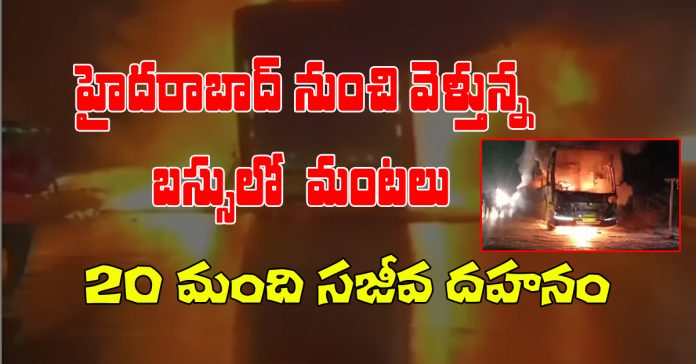 న‌వ‌తెలంగాణ‌-హైద‌రాబాద్ : కర్నూలు జిల్లాలో ఘోర అగ్నిప్రమాదం చోటుచేసుకుంది. హైదరాబాద్ నుంచి బెంగళూరు వెళ్తున్న వి.కావేరి ట్రావెల్స్ బస్సు కర్నూలు శివారు చిన్నటేకూరులో జాతీయ రహదారి 44పై అగ్ని ప్రమాదానికి గురైంది. శుక్రవారం తెల్లవారుజామున ఈ ఘటన జరిగింది. అగ్నిప్రమాదానికి బస్సులోనే పలువురు సజీవదహనం అయ్యారు. ప్రమాద సమయంలో బస్సులో 39 మంది వరకు ఉన్నట్లు సమాచారం. 12 మంది వరకు స్వల్ప గాయాలతో బయటపడినట్లు, 20 మందికి పైగా దుర్మరణం చెందినట్లు సమాచారం.