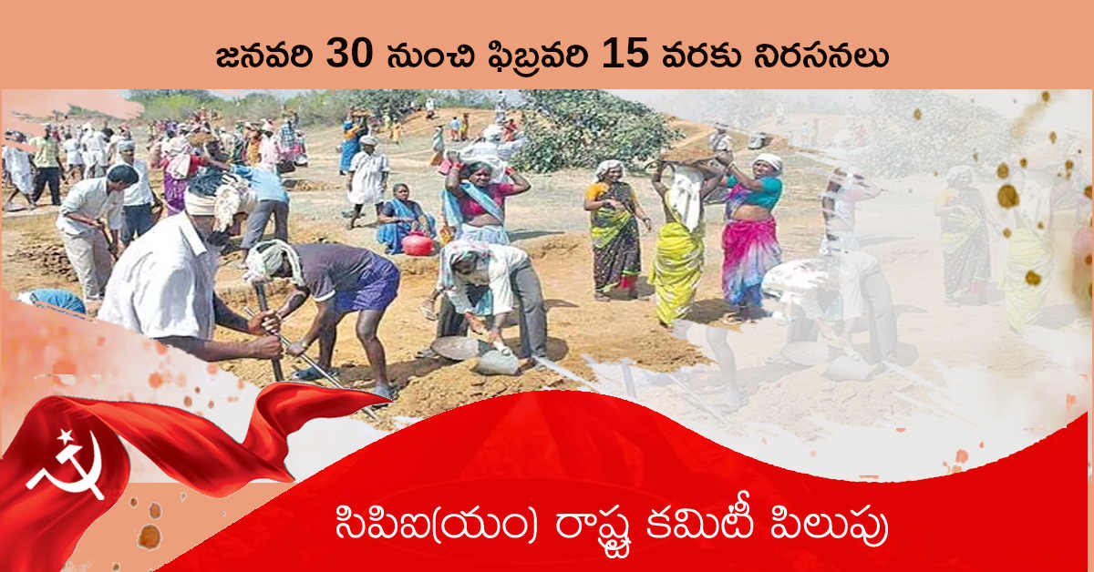 పార్టీ కేంద్ర కమిటీ పిలుపులో భాగంగా ఎంజీఎనఆరఇజీఏ చట్టాన్ని కాపాడుకోవడానికి జనవరి 30 నుండి ఫిబ్రవరి 15 వరకు రాష్ట్రవ్యాప్తంగా అన్ని గ్రామాల్లో సభలు, ర్యాలీలు, నిరసన కార్యక్రమాలు పెద్ద ఎత్తున నిర్వహించాలని పార్టీ శ్రేణులకు పిలుపునిస్తున్నది. ఈ కార్యక్రమాల్లో ఉపాధి హామీ కార్మికులు, వ్యవసాయ కూలీలు, ప్రజా సంఘాల కార్యకర్తలు అందరూ పాల్గొని జయప్రదం చేయాలని విజ్ఞప్తి చేస్తున్నది.