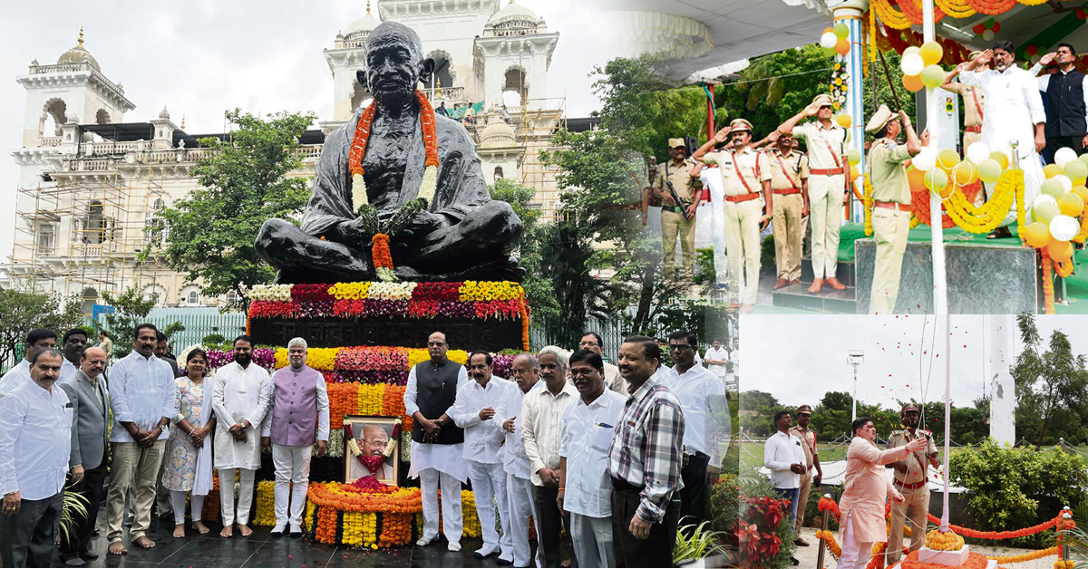 రాష్ట్ర ప్రభుత్వ ఆధ్వర్యంలో బుధవారం ‘తెలంగాణ ప్రజాపాలన దినోత్సవం’ వేడుకలను ఘనంగా నిర్వహించారు. తెలంగాణ సాయుధ రైతాంగ పోరాటం నేపథ్యంలో సెప్టెంబర్ 17న ప్రజాపాలన దినోత్సవంగా జరపాలని ప్రభుత్వం నిర్ణయించింది. అందులో భాగంగా జిల్లాల్లో జరిగిన కార్యక్రమాల్లో మంత్రులు, అసెంబ్లీ, శాసనమండలి స్పీకర్లు, కలెక్టర్లు, ఎమ్మెల్యేలు, ఎంపీలు, అధికారులు పాల్గొన్నారు. జాతీయ జెండాలు ఆవిష్కరించారు. అమరవీరుల స్థూపాలకు నివాళులర్పించారు. మెదక్లో మంత్రి వివేక్ వెంకటస్వామి, సంగారెడ్డి కలెక్టరేట్లో మంత్రి దామోదర్ రాజనర్సింహ్మ, సిద్దిపేట జిల్లా కలెక్టరేట్లో మంత్రి పొన్నం ప్రభాకర్ పాల్గొన్నారు. సూర్యాపేట జిల్లా కేంద్రంలో మంత్రి దుద్దిళ్ల శ్రీధర్బాబు, యాదాద్రి భువనగిరి జిల్లా కలెక్టరేట్లో రాష్ట్ర శాసనమండలి చైర్మెన్ గుత్తా సుఖేందర్రెడ్డి, నల్లగొండ జిల్లా కేంద్రంలోని పోలీస్ పరేడ్ గ్రౌండ్లో మంత్రి కోమటిరెడ్డి వెంకట్రెడ్డి, వికారాబాద్ కలెక్టరేట్లో స్పీకర్ గడ్డం ప్రసాద్కుమార్, రంగారెడ్డి కలెక్టరేట్లో మంత్రి ఉత్తమ్కుమార్రెడ్డి పాల్గొన్నారు. మహబూబ్నగర్లో మంత్రి జూపల్లి కృష్ణారావు, నారాయణపేట జిల్లా కలెక్టరేట్లో మంత్రి డాక్టర్ వాకిటి శ్రీహరి హాజరయ్యారు.