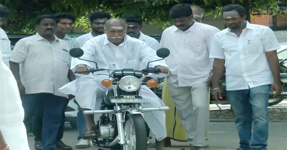 న‌వ‌తెలంగాణ‌-హైద‌రాబాద్: కేర‌ళ‌, అసోం, పుదుచ్చేరిలో అసెంబ్లీ ఎన్నిక‌ల‌ పోలింగ్ జ‌రుగుతున్న విష‌యం తెలిసిందే. ఉదయం 7 గంటల నుంచి సాయంత్రం 5 గంటల వరకు పోలింగ్ జరగనుంది. ఈక్ర‌మంలో కేంద్ర‌పాలిత ప్రాంతం పుదుచ్చేరి సీఎం రంగ‌స్వామి త‌న ఓటు హ‌క్కును వినియోగించుకున్నారు. సింపుల్‌గా బైక్ మీద పోలింగ్ బూత్‌కు వ‌చ్చి ఓటు వేశారు.