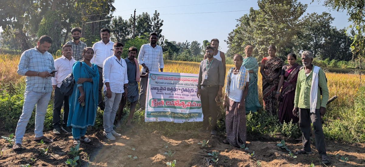 జయశంకర్ భూపాలపల్లి జిల్లాలో కాటారం మండల కేంద్రంలో “నాణ్యమైన విత్తనం – రైతన్నకు నేస్తం” కార్యక్రమంలో భాగంగా వరి విత్తన క్షేత్రాలలో క్షేత్ర దినోత్సవం నిర్వహించారు. మండల వ్యవసాయ అధికారిణి పూర్ణిమ ఆధ్వర్యంలో రైతు శ్రీ పోషి రెడ్డి వ్యవసాయ క్షేత్రంలో ఈ కార్యక్రమాన్ని నిర్వహించారు. ప్రాంతీయ వ్యవసాయ పరిశోధనా స్థానం వరంగల్ శాస్త్రవేత్తల బృందం రైతులకు వరి రకం WGL- 962 గుణగణాల గురించి వివరించారు. ఈ సందర్బంగా శాస్త్రవేత్తలు మాట్లాడుతూ… అధిక దిగుబనిచ్చే వరి రకమును రైతుల నుండి తోటి రైతులకు నాణ్యమైన విత్తనాలుగా అందించాలని కోరారు. తోటి రైతులు కూడా ఈ రకం చాలా అనుకూలంగా ఉందని, చీడ పీడలు తట్టుకుని మంచి దిగుబడి ఇస్తుందని ఆశాభావం వ్యక్తం చేశారు. ఈ కార్యక్రమంలో పాల్గొన్న రైతులు ఈ రకం యొక్క గుణగణాలు చూసి హర్షం వ్యక్తం చేశారు. శాస్త్రవేత్తలు డా. హరి , డా. వెంకట రాజకుమార్ , డా. ఓం ప్రకాష్ , డా. ప్రశాంత్ , శ్రీమతి. ఏ ఈ ఓ శ్రీ. రాజన్న, అభ్యుదయ రైతులు, గ్రామ రైతులు పాల్గొన్నారు.