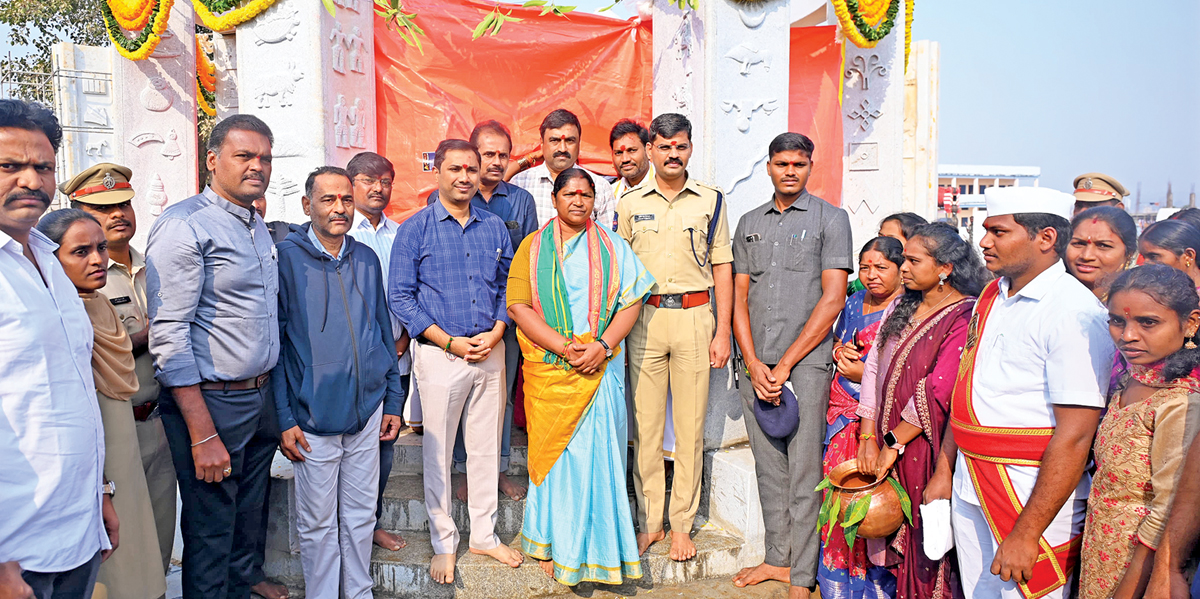 ములుగు జిల్లా తాడ్వాయి మండలం మేడారంలో ఆదివాసీ సంస్కృతీ సాంప్రదాయాలతో బుధవారం తెల్లవారుజామున అత్యంత భక్తితో పూజారులు గోవిందరాజు, పగిడిద్దరాజు స్తంభాలను గద్దెలపై పునః ప్రతిష్టాపన చేసి ప్రత్యేక పూజలు నిర్వహించారు. ఏటూరునాగారం మండలం కొండయి నుంచి దెబ్బగట్ల వంశస్థులు, మహబూబాబాద్ జిల్లా గంగారం మండలం పూనుగొండ్ల నుంచి పెనక వంశీయులతో పాటు ఆయా వంశస్తుల ఆచార సంప్రదాయాలతో సమ్మక్క సారలమ్మ పూజారులతో కలిసి ఉమ్మడిగా పూజలు నిర్వహించి ఆయా గద్దెలపై పసుపు కుంకుమలతో ప్రత్యేక పూజలు నిర్వహించారు. ఆయా గ్రామాల నుంచి ఆడబిడ్డలు మామిడి తోరణాలతో అలంకరించి డోలు వాయిద్యాల నడుమ మంగళహారతులతో స్వాగతం పలికి ప్రతిష్టాపన కార్యక్రమాన్ని ఘనంగా నిర్వహించారు.