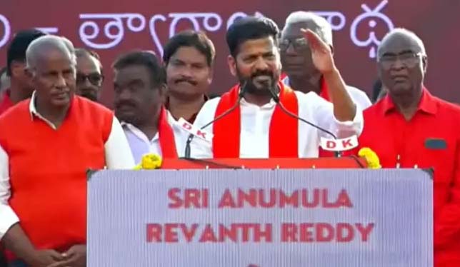 ఈ సందర్భంగా రేవంత్రెడ్డి మాట్లాడుతూ.. ‘‘కాంగ్రెస్, కమ్యూనిస్టు సోదరులు కొట్లాడితేనే దేశానికి స్వాతంత్ర్యం వచ్చింది. దున్నివాడిదే భూమి అని కమ్యూనిస్టు పార్టీ నినాదం ఇస్తే.. దానికి చట్టరూపం కల్పించింది కాంగ్రెస్ సర్కారు. జాతీయ గ్రామీణ ఉపాధి హామీ చట్టాన్ని కాంగ్రెస్ పార్టీ తీసుకొచ్చింది. రజాకార్లకు, నిజాంకు వ్యతిరేకంగా కమ్యూనిస్టులు పోరాడారు. ఆనాడు జరిగిన సాయుధ రైతాంగ పోరాటంలో 4 వేల మంది వీరులు అమరులయ్యారు. మతతత్వ శక్తులకు వ్యతిరేకంగా ఎర్రజెండా తలెత్తి నిలబడుతుంది. కమ్యూనిస్టుల కంచుకోట ఖమ్మంలో ఈ సభ జరగడం హర్షణీయం.