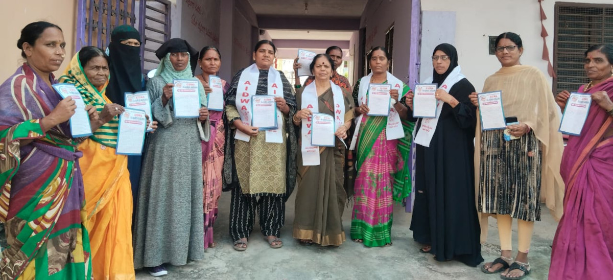 నగరంలోని నాందేవ్ వాడ లో ఐద్వా కార్యాలయంలో అఖిల భారత ప్రజాతంత్ర మహిళా సంఘం ఆల్ ఇండియా మహాసభల సందర్భంగా రాష్ట్ర ఉపాధ్యక్షురాలు ఆశలత ఆధ్వర్యంలో కరపత్రాలను విడుదల చేశారు. ఈ సందర్భంగా ఆమె మాట్లాడుతూ.. దేశవ్యాప్తంగా జరుగుతున్న హత్యలు హత్యాచారాలు పెరిగిన నిత్యవస ధరలు, పెట్రోల్, డీజిల్ ధరలు ప్రేమోన్మాద దాడులు విద్య, వైద్యం, ఉద్యోగం, ఇలా అనేక సమస్యల పైన నిరంతరం పోరాటం చేస్తూ దేశంలో రాష్ట్రంలో ఐద్వా గుర్తింపు పొంది దేశంలో ఎన్నో కుటుంబాలకు అండగా నిలిచింది. కావున అందరూ ఆలిండియా మహాసభలను జయప్రదం చేయాలని విజ్ఞప్తి చేశారు. ఈ కార్యక్రమంలో జిల్లా కార్యదర్శి బి సుజాత జిల్లా అధ్యక్షురాలు అనిత జిల్లా కమిటీ సభ్యురాలు కవిత జిల్లా కమిటీ సభ్యులు హసీనా బేగం నగర నాయకులు శ్రీదేవి, రేఖా, యశోద, రజియా, తదితరులు పాల్గొన్నారు.