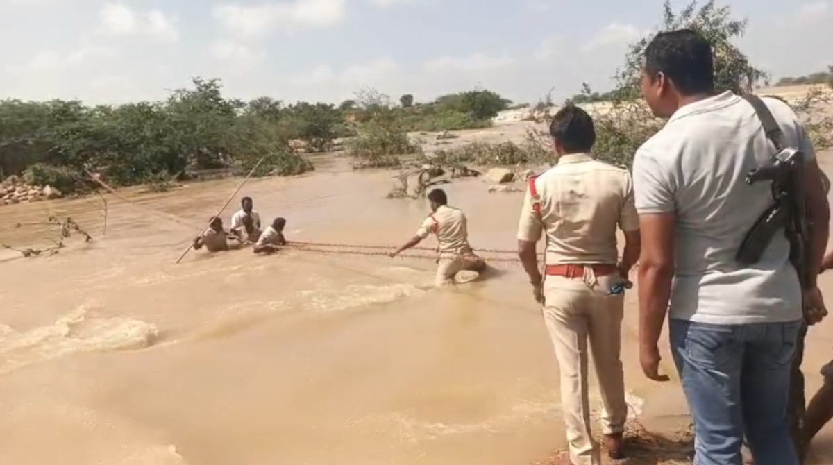 నవతెలంగాణ – ఉప్పునుంతల : మొంథా తుఫాన్ బీభత్సంతో నాగర్ కర్నూల్ జిల్లా ఉప్పునుంతల మండలంలో డిండి వాగు ఉధృతంగా ప్రవహించింది. ఈ క్రమంలో లతీపూర్ గ్రామానికి చెందిన గొర్రెల కాపరి దంపతులు వరదలో చిక్కుకున్నారు. సమాచారం అందుకున్న పోలీసులు చాకచక్యంగా స్పందించి తాడుల సాయంతో వారిని సురక్షితంగా ఒడ్డుకు చేర్చారు. రక్షణ చర్యల్లో డీఎస్పీ పల్లె శ్రీనివాసులు, సీఐ నాగరాజు, ఎస్ఐ వెంకట్ రెడ్డి, కానిస్టేబుల్ లింగం, లస్కర్ నాయక్ బృందం పాల్గొన్నారు. వాగులో చిక్కుకున్న దంపతులకు ఆహారం అందించి, గురువారం మధ్యాహ్నం ఒక్క గంటకు వారిని సురక్షితంగా ఇంటికి చేర్చినట్లు అధికారులు తెలిపారు. పోలీసులు చూపిన చాకచక్యం, మానవత్వం పట్ల గ్రామస్థులు ప్రశంసలు కురిపించారు.