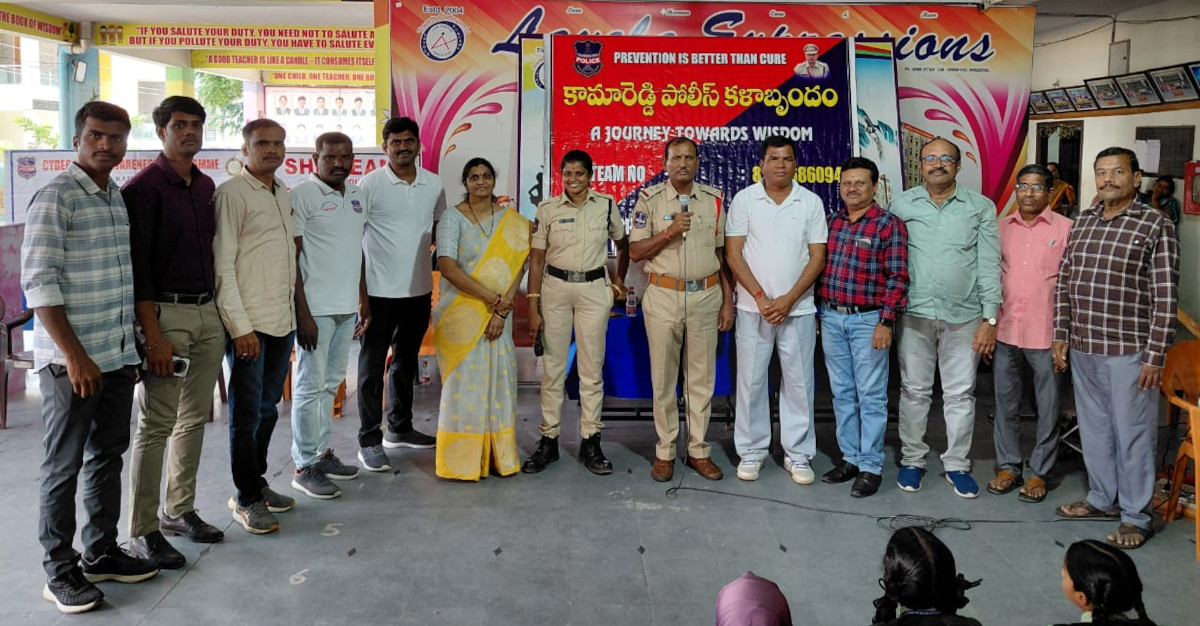 కామారెడ్డి కామారెడ్డి పట్టణంలోని లయోలా హైస్కూల్లో కామారెడ్డి పోలీసులు మంగళవారం కళాబృందం ఆధ్వర్యంలో సి టీమ్స్ సైబర్ నేరాలు మాదకద్రవ్యాలు రోడ్డు ప్రమాదాలపై అవగాహన కార్యక్రమాన్ని నిర్వహించారు. కామారెడ్డి జిల్లా సూపరిండెంట్ ఆఫ్ పోలీస్ యం.రాజేష్ చంద్ర ఆదేశానుసారం కామారెడ్డి జిల్లా పోలీస్ కళాబృందంచే కామారెడ్డి టౌన్ సబ్ – ఇన్స్పెక్టర్ రాజారామ్ ఆధ్వర్యంలో కార్యక్రమం నిర్వహించారు. ఈ కార్యక్రమంలో భాగంగా సైబర్ నేరాలపై కానిస్టేబుల్. ప్రవీణ్ మాట్లాడుతూ ఏదైనా సమస్య వచ్చినప్పుడు వెంటనే టోల్ ఫ్రీ నెంబర్.1930 ఫోన్ చేయాలన్నారు. కామారెడ్డి షి టీమ్స్ సభ్యులు మహిళా కానిస్టేబుల్, సౌజన్య, కానిస్టేబుళ్లు భూమయ్య, భాను లు అవగాహనా కల్పిస్తూ ఫోన్ నెంబర్ 8712686094 అత్యవసర సమయంలో, 100 కాల్ చేయాలని, రోడ్డు ప్రమాదాల నివారణ డ్రంక్ అండ్ డ్రైవ్, సెల్ఫోన్ డ్రైవింగ్,మాదకద్రవ్యాలు గంజాయి డ్రగ్స్ సేవించి యువత పెడదారి పట్టొద్దని, మానవ అక్రమ రవాణపై మహిళలు చిన్న పిల్లలపై జరుగు హత్య నేరాలుపై బాల్య వివాహాలు, చిన్న పిల్లలపై జరిగే లైంగిక నేరాలపట్ల బరోసా టీమ్ అవగాహన కల్పించారు.