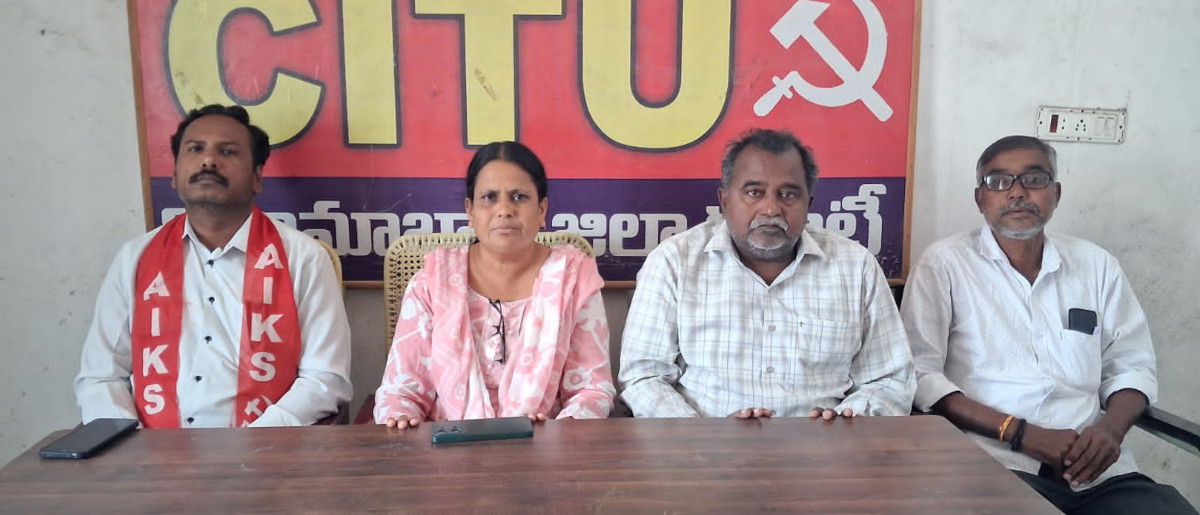 నరేంద్ర మోడీ ప్రజా, కార్మిక ,రైతు వ్యతిరేక విధానాల నిరసిస్తూ ఈనెల 14న రౌండ్ టేబుల్ సమావేశం జయప్రదం చేయండి అని సీఐటీయూ, తెలంగాణ రైతు వ్యవసాయ కార్మిక సంఘాలు పిలుపునిచ్చాయి. శనివారం నిజామాబాద్ పట్టణంలోని నాందేవాడ సిఐటియు కార్యాలయంలో పత్రికా విలేకరుల సమావేశం నిర్వహించారు. ఈ సందర్భంగా తెలంగాణ వ్యవసా కార్మిక సంఘం జిల్లా కార్యదర్శి పెద్దివెంకట్రాములు, సిఐటియు జిల్లా కార్యదర్శి నూర్జహాన్, తెలంగాణ రైతు సంఘం జిల్లా కార్యదర్శి వెంకటేష్ లు మాట్లాడుతూ.. మోడీ అనుసరిస్తున్న ప్రజా వ్యతిరేక విధానాలు నిరసిస్తూ ఈనెల 14న నిజాంబాద్ పట్టణంలోని నాందేవాడ సిఐటియు కార్యాలయంలో రౌండ్ టేబుల్ సమావేశం నిర్వహిస్తున్నాము అన్నారు.