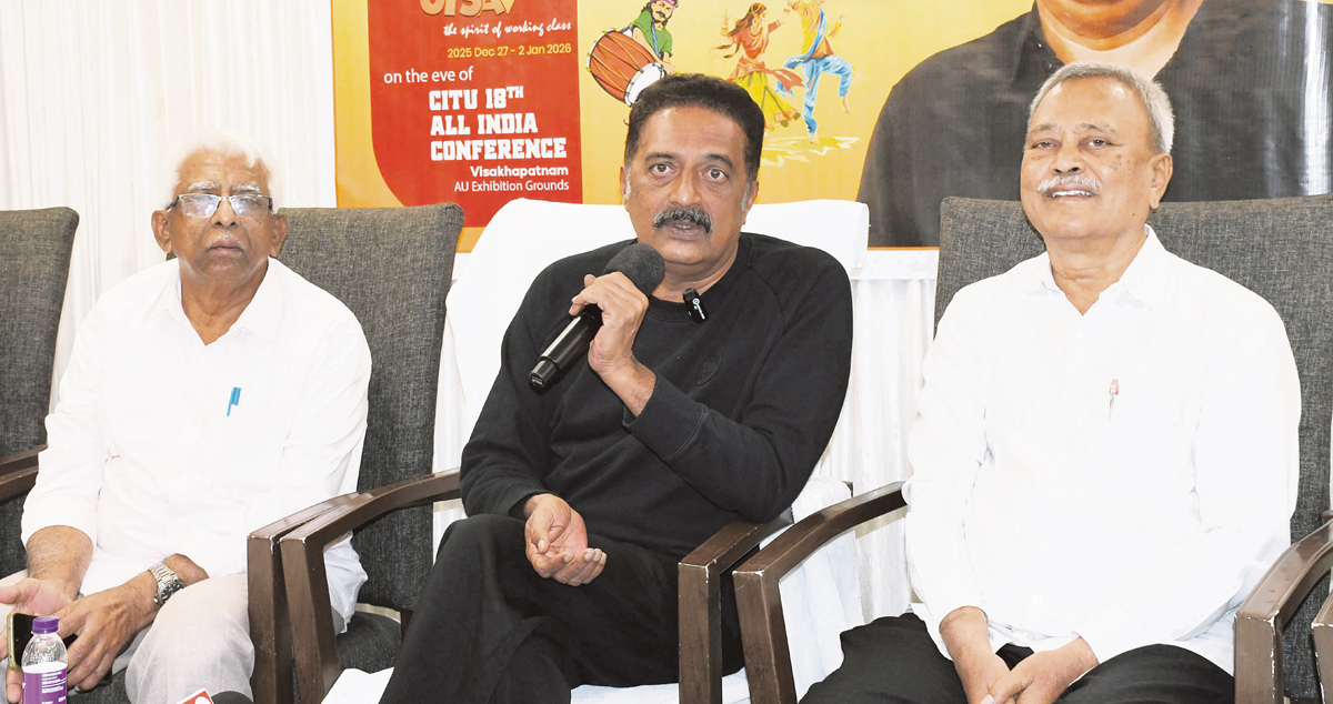 పాలకులకు ప్రశ్నించే వారంటే గిట్టరని అన్నారు. కానీ ప్రజలకు నిరంతరం ప్రశ్నించడమే మార్గమని, లేదంటే మార్పురాదని ప్రకాశ్రాజ్ ఆవేశంగా వెల్లడించారు. మెడికల్ కాలేజీలను ఏపీలో పీపీపీ పేరుతో అమ్మడం ప్రజలకు నష్టమన్నారు. అసలు ప్రజలు ఎన్నికల్లో ఎవరిని బలపరచాలో నేర్చుకోవాలన్నారు. కర్నాటకలోని బెంగళూరులో 1007 ఎకరాల వ్యవసాయ భూమిని ఇది వరకు ఒకసారి ప్రభుత్వం ప్రయివేటు వాళ్ల చేతుల్లో పెట్టాలనుకున్నపుడు ప్రజలంతా కలిసి పోరాడి ఆపగలిగారని గుర్తుచేశారు. మీడియా కూడా అమ్ముడుపోయిందని, ఎంతో కొంత ఇండిపెండెంట్ మీడియా సక్రమంగా పనిచేస్తోందని చెప్పుకొచ్చారు. సినిమాలు, మీడియా ద్వారా 90 శాతం చెత్తను పాలకులు ఎక్కిస్తున్నారని, కేరళ ఫైల్స్ అనే సినిమా తీయించి స్వయంగా మోడీయే రూ.కోట్లు ఖర్చు చేసి సినిమా చూడాలనే క్యాంపెయిన్ చేయడం ఏంటని ప్రశ్నించారు. అబద్ధాలతో భయాన్ని కలిగించే సామ్రాజ్యాన్ని దేశంలో పాలక శక్తులు నిర్మిస్తున్నాయని తెలిపారు. ప్రజలు నిత్యం పోరాడాలని, ఈ వ్యవస్థను అర్థం చేసుకుని పోరాడేలా సీఐటీయూ వంటి సంస్థలు చేస్తున్నాయని అభినందించారు. మీడియా సమావేశంలో సీఐటీయూ రాష్ట్ర ప్రధాన కార్యదర్శి సీహెచ్.నర్సింగరావు, అధ్యక్షులు ఏవీ నాగేశ్వరరావు, ఉపాధ్యక్షులు, మాజీ ఎమ్మెల్యే ఎంఏ. గఫూర్, కందారపు మురళి పాల్గొన్నారు.