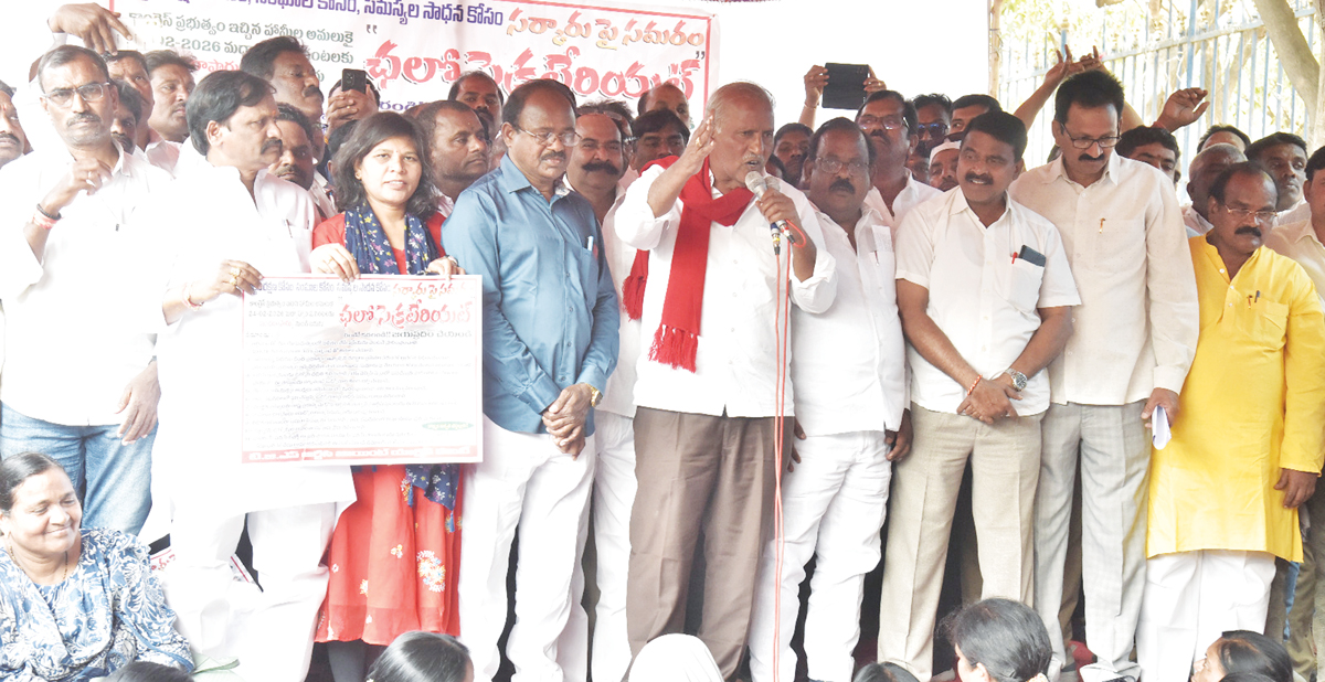 ఆర్టీసీ కార్మికుల దీర్ఘకాలిక పెండింగ్ సమస్యలు పరిష్కరించాలని ఎమ్మెల్యే, సీపీఐ రాష్ట్ర కార్యదర్శి కూనంనేని సాంబశివరావు ప్రభుత్వాన్ని కోరారు. మంగళవారం హైదరాబాద్ ఇందిరాపార్కు వద్ద ఆర్టీసీ జేఏసీ ఆధ్వర్యంలో చలో సెక్రటేరియట్ కార్యక్రమం నిర్వహించారు. సమస్యల పరిష్కారం కోసం ఆర్టీసీ యాజమాన్యానికి, ప్రభుత్వానికి ఎన్ని మెమోరాండాలు సమర్పించినా స్పందన లేకపోవడంతో చలో సెక్రటేరియట్ చేపట్టవలసి వచ్చిందని జేఏసీ నాయకులు తెలియజేశారు. ఈ సందర్భంగా ఎమ్మెల్యే మాట్లాడుతూ.. ఆర్టీసీ ఉద్యోగులు అనేక సమస్యలతో సతమతమవుతున్నారని, తమ హక్కుల కోసం ఎన్నో పోరాటాలు, ధర్నాలు నిర్వహించినా ప్రభుత్వం నుంచి సరైన స్పందన రాలేదని అన్నారు. కార్మికుల సమస్యలను రాష్ట్ర ప్రభుత్వం దృష్టికి తీసుకెళ్తామని హామీ ఇచ్చారు. తెలంగాణ ఆర్టీసీ జేఏసీ చైర్మెన్ ఈదురు వెంకన్న మాట్లాడుతూ.. కాంగ్రెస్ అధికారంలోకి వచ్చిన తరువాత ఆర్టీసీని ప్రభుత్వంలో విలీనం చేస్తామని ముఖ్యమంత్రి రేవంత్ రెడ్డి హామీ ఇచ్చారని, కానీ రెండున్నర సంవత్సరాలు గడిచినా విలీన ప్రక్రియ ప్రారంభం కాలేదని అన్నారు. వైస్ చైర్మెన్ ఎం.థామస్ రెడ్డి మాట్లాడుతూ.. 2017 వేతన సవరణ అమలు చేసినప్పటికీ, సంబంధిత ఎరియర్స్ ఇప్పటికీ చెల్లించలేదన్నారు. అలవెన్సులు, ఫ్రింజ్ బెనిఫిట్స్ పెంపు జరగకపోవడంతో కార్మికులకు ఆర్థిక నష్టం వాటిల్లిందని తెలిపారు. 2017లో రిటైరైన కార్మికులకు ఫిక్సేషన్లు జరిగినా సెటిల్మెంట్లు పూర్తికాలేదని, 2021 వేతన సవరణను 30 శాతం ఫిట్మెంట్తో అమలు చేయాలని డిమాండ్ చేశారు. కన్వీనర్ ఎండీ మౌలానా మాట్లాడుతూ.. 2019 నుంచి ట్రేడ్ యూనియన్లను నిర్వీర్యం చేయడంతో యాజమాన్యం వేధింపులు పెరిగాయని తెలిపారు. ట్రేడ్ యూనియన్లను పునరుద్ధరించి, చట్ట ప్రకారం ఎన్నికలు నిర్వహించాలని ప్రభుత్వాన్ని కోరారు. కో-కన్వీనర్ కె.యాదయ్య మాట్లాడుతూ.. విధినిర్వహణలో మరణించిన ఆర్టీసీ ఉద్యోగుల కుటుంబాలకు బ్రెడ్ విన్నర్ స్కీమ్ కింద రెగ్యులర్ ప్రాతిపదికన ఉద్యోగాలు ఇవ్వాలని డిమాండ్ చేశారు. ప్రస్తుతం కన్సాలిడేటెడ్ బేసిస్లో కారుణ్య నియామకాలు చేపట్టడం అన్యాయమన్నారు. ఈ ధర్నాలో పెద్ద సంఖ్యలో ఆర్టీసీ కార్మికులు పాల్గొన్నారు.