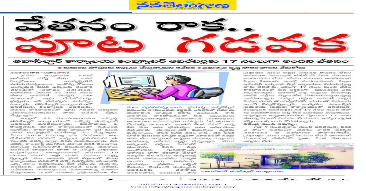 వేతనం రాక.. పూట గడవక అనే శీర్షికతో తాహసిల్దార్ కార్యాలయంలో పనిచేస్తున్న కంప్యూటర్ ఆపరేటర్ల కష్టాల గురించి గత నెలలో కథనం ప్రచురితమైన విషయం విధితమే. వచ్చే అరకోర వేతనం సైతం పెండింగ్ లో పెట్టడంతో వారు ఎదుర్కొంటున్న సమస్యలపై నవ తెలంగాణ ప్రచురించిన కథనానికి ప్రభుత్వం స్పందించింది. వారి ఖాతాలలో పెండింగ్ వేతనాలు బుధవారం జమ చేశారు. వారికి వచ్చే అరకొర వేతనం సరిపోవడం లేదని గుర్తించి వారి వేతనాన్ని రూ.28,000 పెంచడం పట్ల ఆపరేటర్లు హర్షం వ్యక్తం చేశారు. వారి సమస్యను ప్రభుత్వం దృష్టికి తీసుకెళ్లినందుకు నవతెలంగాణ పత్రికకు కృతజ్ఞతలు తెలిపారు.