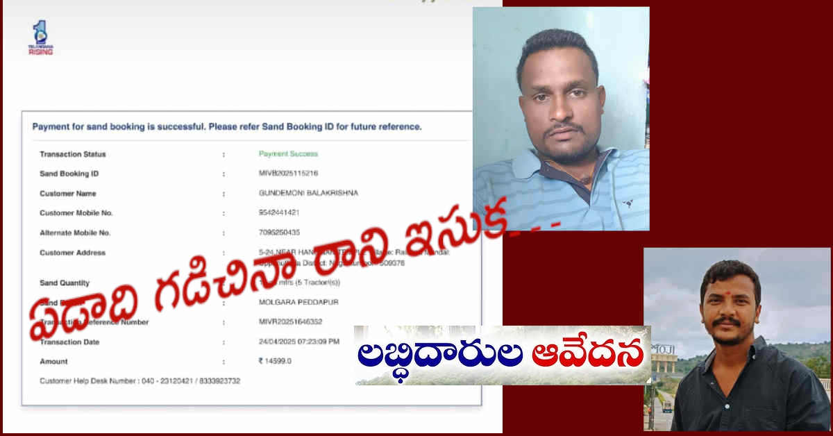 రెండు టాక్టర్లకు గాను రూ.5839 ఆన్లైన్ లో బుక్ చేసి ఇసుక కోసం ఏడాది నుంచి ఎదురు చూస్తున్నాం. పలుమార్లు అధికారులను సంప్రదించినా స్పష్టమైన సమాధానం ఇవ్వడం లేదు. ఇసుక సరఫరా ఆలస్యం కావడంతో నిర్మాణ ఖర్చులు కూడా పెరుగుతున్నాయి. అధికారులు సమస్యను వెంటనే పరిష్కరించాలి.