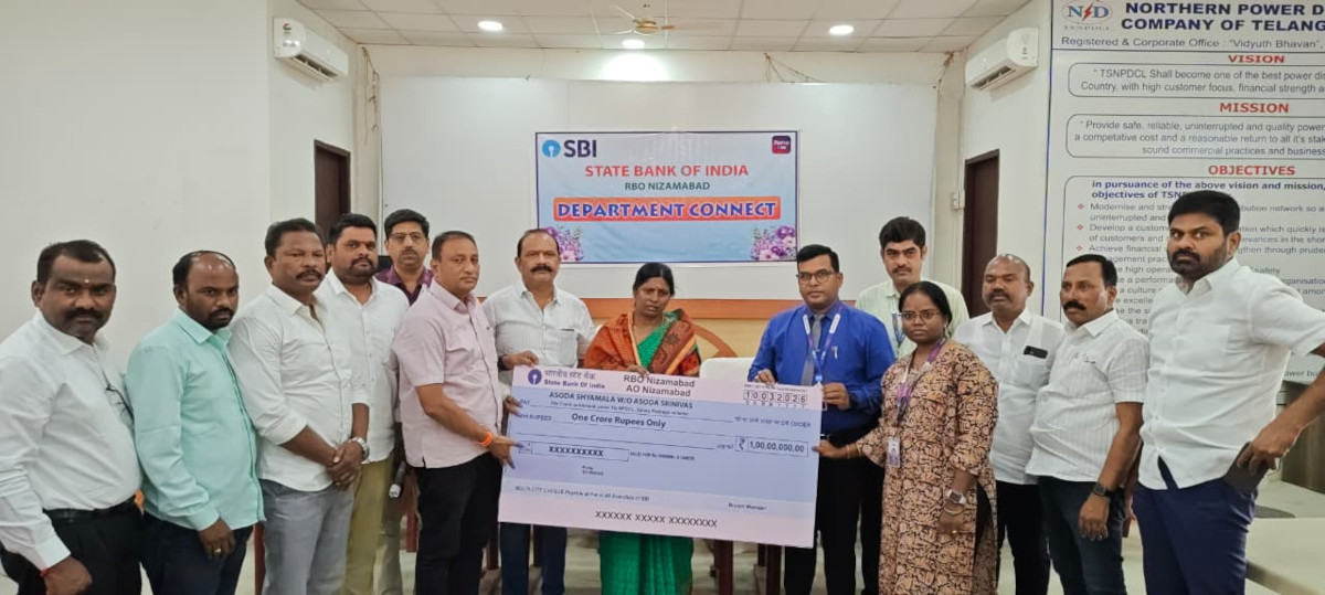 Homeతెలంగాణ రౌండప్విద్యుత్ ఉద్యోగికి ఎస్బిఐ రూ.1 కోటి చేక్ అందజేత