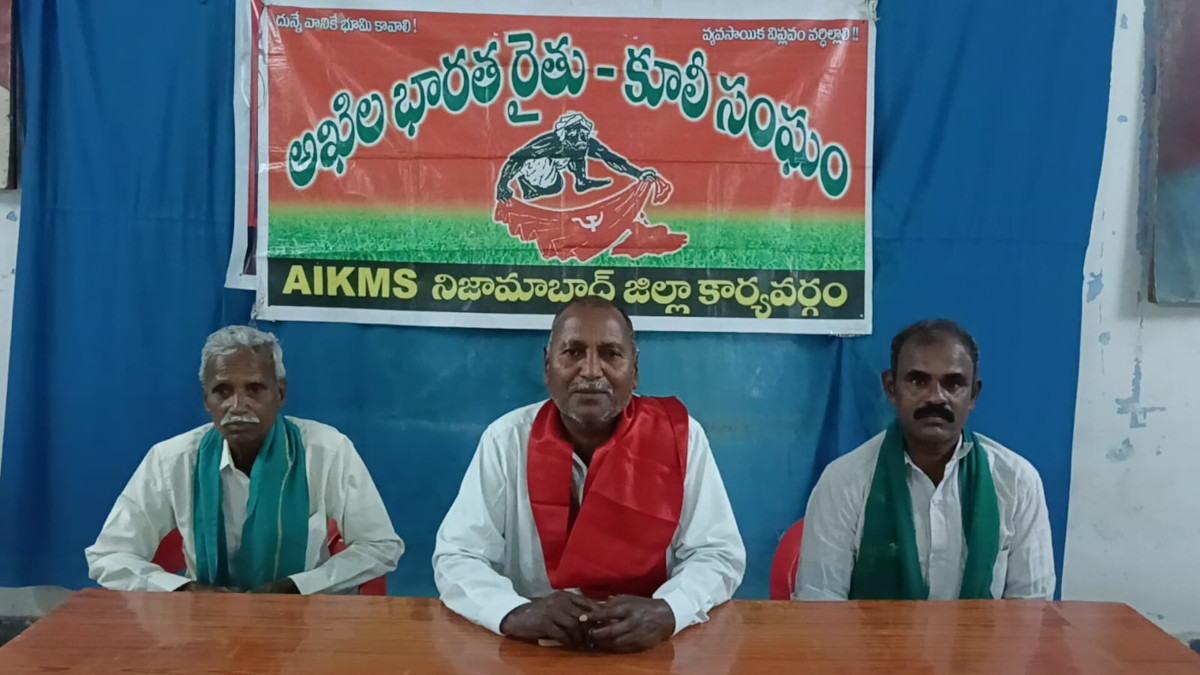 ఈ ఖరీఫ్ సీజన్లో రైతులు వేసుకున్న పంటలు చేతులకు వచ్చినాయని కోతలకు రైతులు సిద్ధంగా ఉన్నారని ఆయన అన్నారు. కొన్ని ప్రాంతాలలో మొక్కజొన్న, సోయా రైతులు ఈ పంటలను అమ్ముకుందామన్న ప్రభుత్వం కొనుగోలు కేంద్రాలను ఏర్పాటు చేయకపోవడం వల్ల ఆందోళన చెందుతున్నారని ఆయన అన్నారు. ప్రభుత్వం వెంటనే కొనుగోలు కేంద్రాలను ఏర్పాటు చేయాలని అఖిల భారత రైతు కూలీ సంఘం ఏఐకేఎంఎస్ జిల్లా అధ్యక్షులు వేల్పూర్ భూమయ్య ప్రభుత్వాన్ని డిమాండ్ చేశారు.05-10- 2025న ఏఐకేఎంఎస్ ఆధ్వర్యంలో నిజామాబాద్ జిల్లా కేంద్రంలోని ఎన్ఆర్ భవన్ లో పాత్రికేయుల సమావేశం నిర్వహించారు. ఈ సందర్భంగా వేల్పూర్ భూమయ్య మాట్లాడుతూ జిల్లాలో సుమారు 52 వేల ఎకరాల మక్కజొన్న పంట వేశారని అకాల వర్షాల వల్ల పంట నష్టపోయి దిగుబడులు తగ్గుతున్నాయన్నారు.