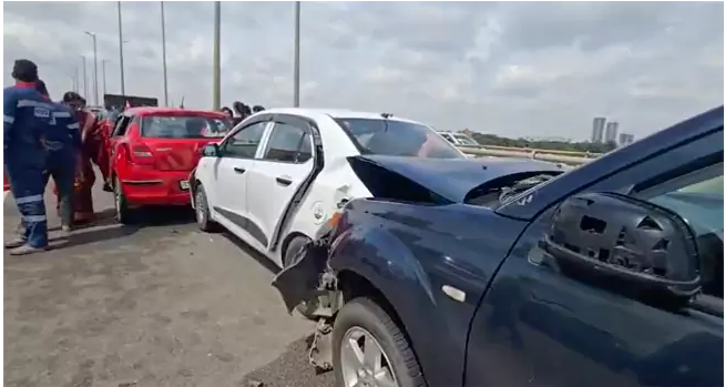 నవతెలంగాణ – హైదరాబాద్: హిమాయత్ సాగర్ వద్ద ఔటర్ రింగ్ రోడ్డుపై రోడ్డు ప్రమాదం జరిగింది. ఒకదాని వెనుక ఒకటి వచ్చిన ఏడు కార్లు ఢీకొన్నాయి. ముందువెళ్తున్న కారు డ్రైవర్ సడెన్ బ్రేక్ వేయడంతో ఈ ఘటన చోటుచేసుకుంది. ఎయిర్ బెలూన్లు తెరుచుకోవడంతో ప్రమాదానికి గురైన కార్లలో ప్రయాణిస్తున్న వారంతా సురక్షితంగా బయటపడ్డారు. శంషాబాద్ నుంచి గచ్చిబౌలి వెళ్తున్న దారిలో ఔటర్ రింగ్ రోడ్డుపై జరిగిన ఈ ఘటనతో దాదాపు 2కి.మీల మేర ట్రాఫిక్జామ్ అయింది. సమాచారం అందుకున్న పెట్రోలింగ్ సిబ్బంది, రాజేంద్రనగర్ పోలీసులు అక్కడికి చేరుకొని ట్రాఫిక్ని క్లియర్ చేశారు.
