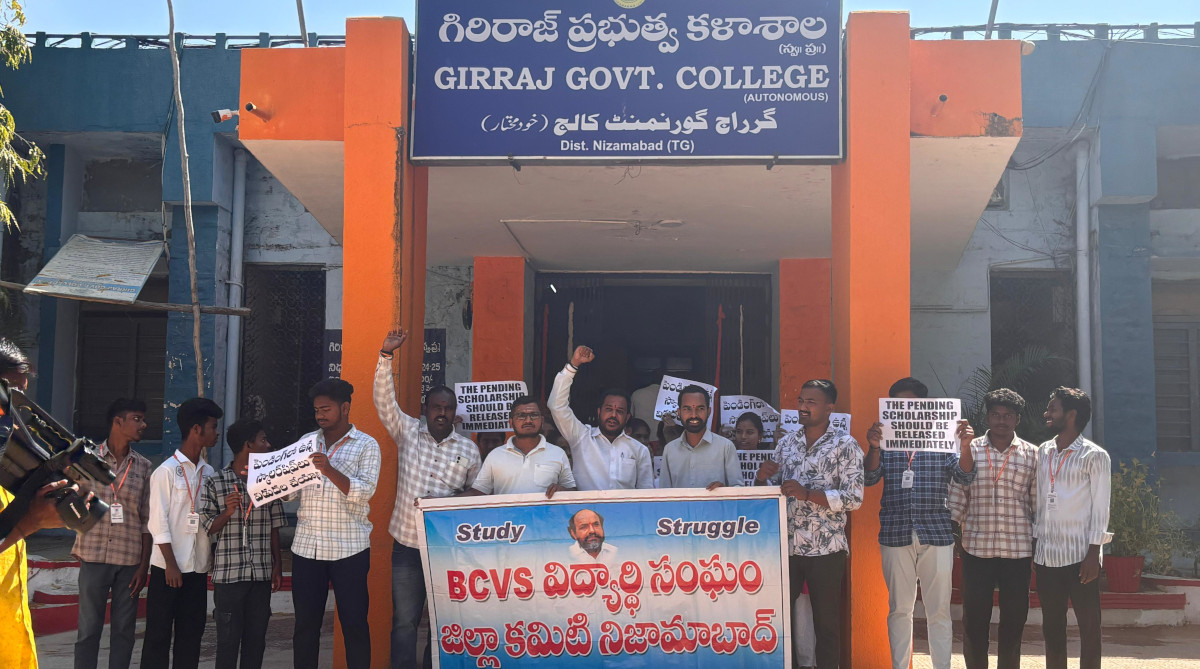 జాతీయ బీసీ సంక్షేమ సంఘం రాజ్యసభ సభ్యులు ఎంపీ ఆర్ కృష్ణయ్య పిలుపుమేరకు రాష్ట్రవ్యాప్తంగా కలెక్టరేట్ల ముట్టడి కళాశాలల బైకడ్ చేయడంలో భాగంగా శుక్రవారం నిజామాబాద్ బిసి విద్యార్థి సంఘం జిల్లా అధ్యక్షులు నవాతే ప్రతాప్ ఆధ్వర్యంలో గిరిరాజ్ కళాశాల బైకడ్ చేయడం జరిగింది. ఈ సందర్భంగా నావాతే ప్రతాప్ మాట్లాడుతూ.. నిజామాబాద్ జిల్లాలో అన్ని కళాశాలలో స్వచ్ఛందంగా బందు నిర్వహించారు అంతేకాకుండా కొన్ని కళాశాలలను బంద్ చేసాము. కొన్ని కళాశాలలు స్వచ్ఛందంగా బందు చేయడానికి గల కారణం నిజామాబాద్ జిల్లాలో సుమారు 300 కోట్ల రూపాయలు స్కాలర్షిప్లు బకాయిలు ఉన్నాయి.